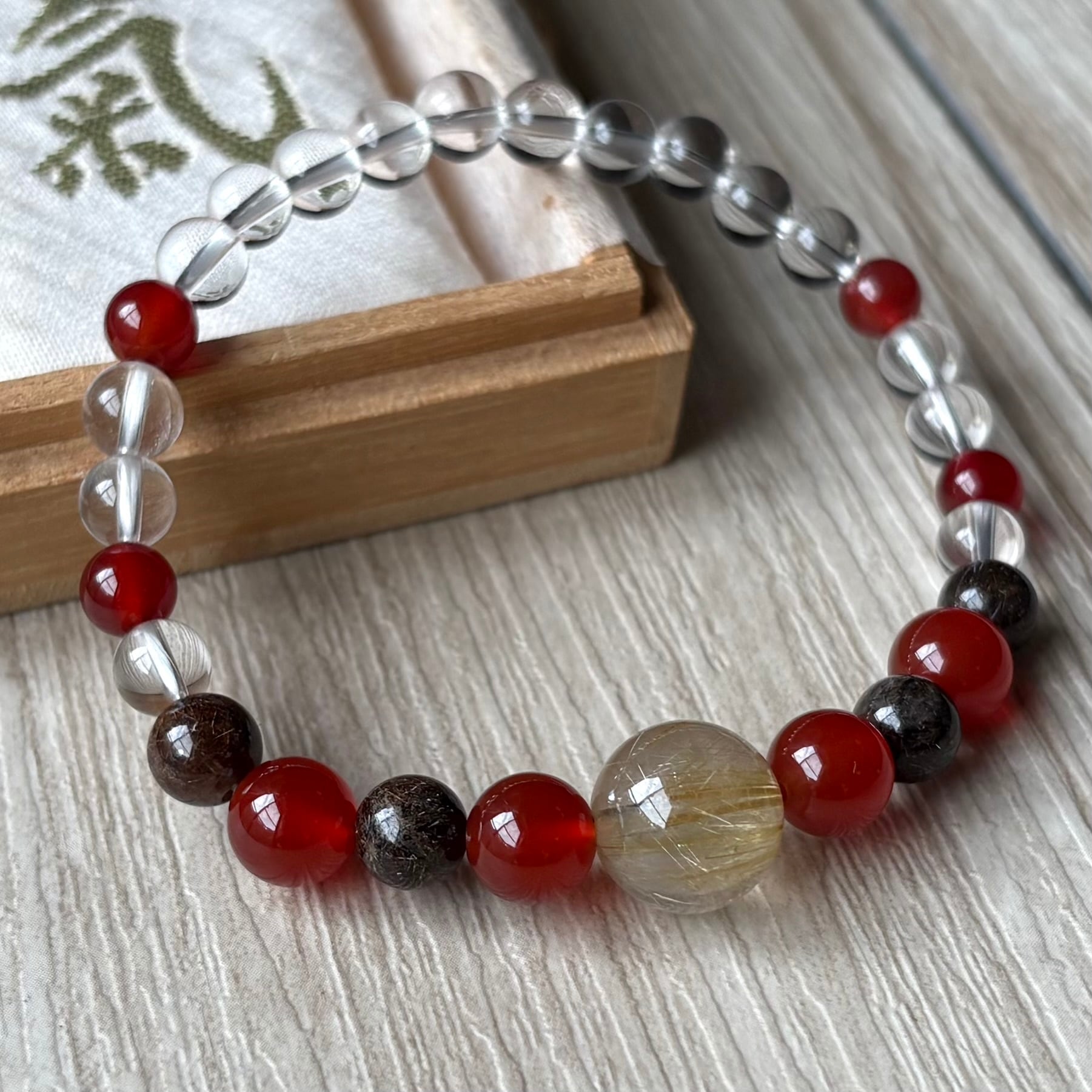 生命力を高め金運アップ/ルチルクォーツ・レッドアゲート・水晶/パワーストーンブレスレット