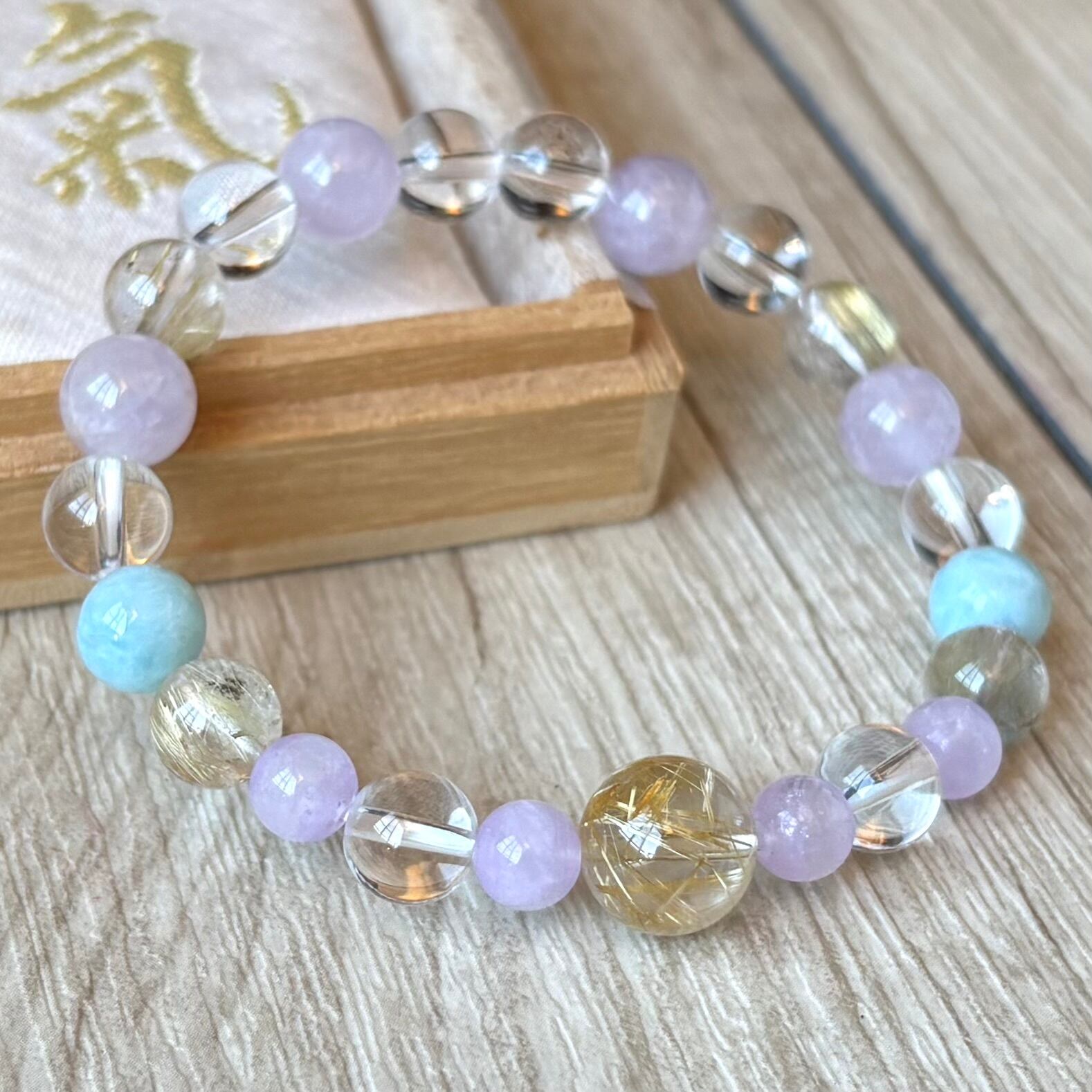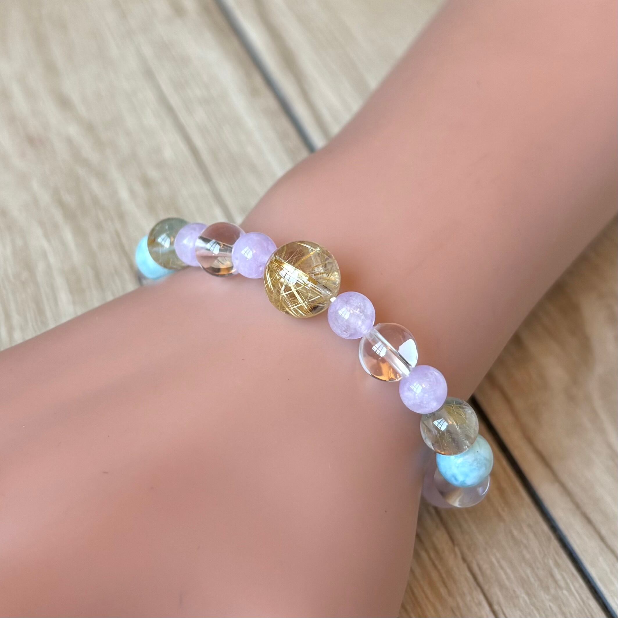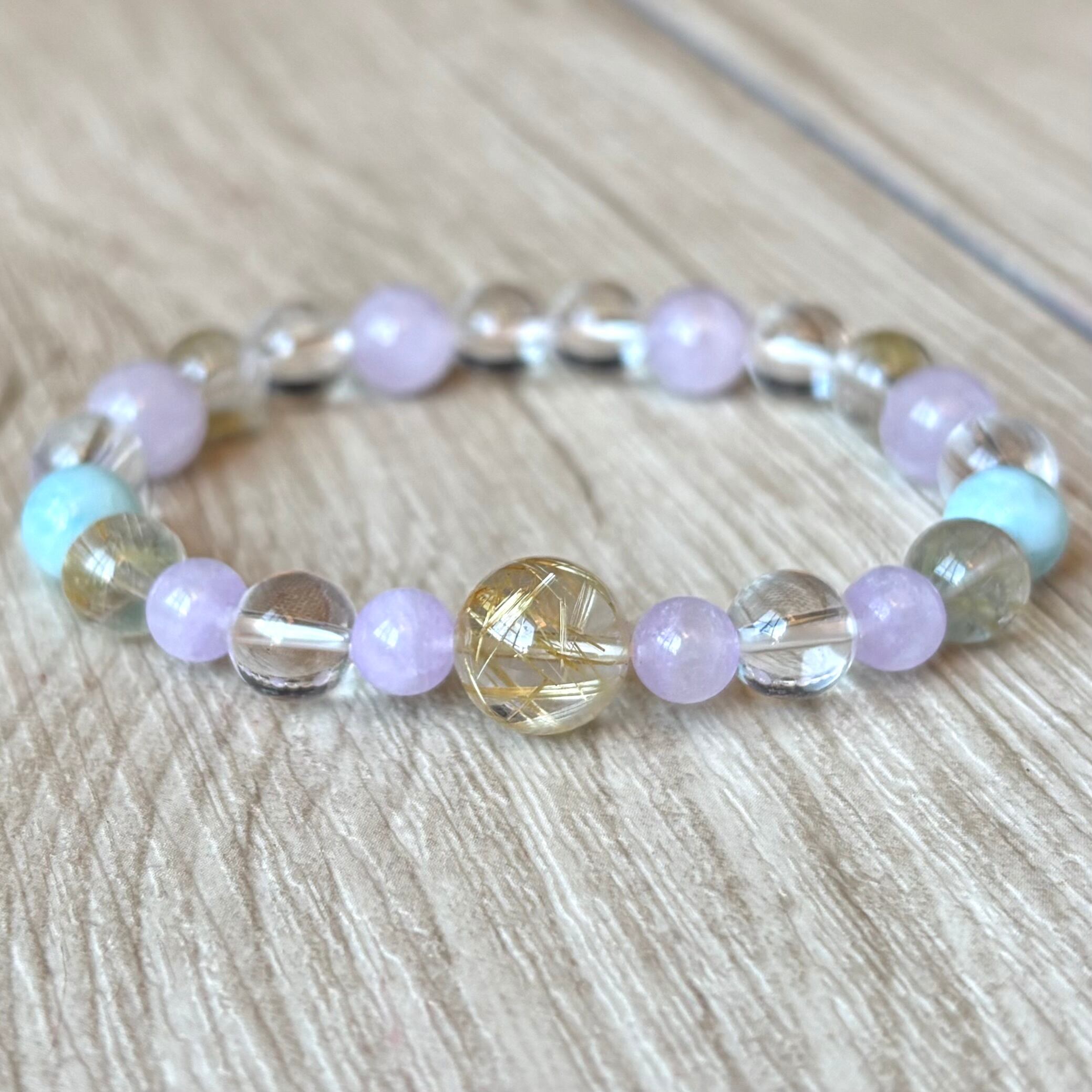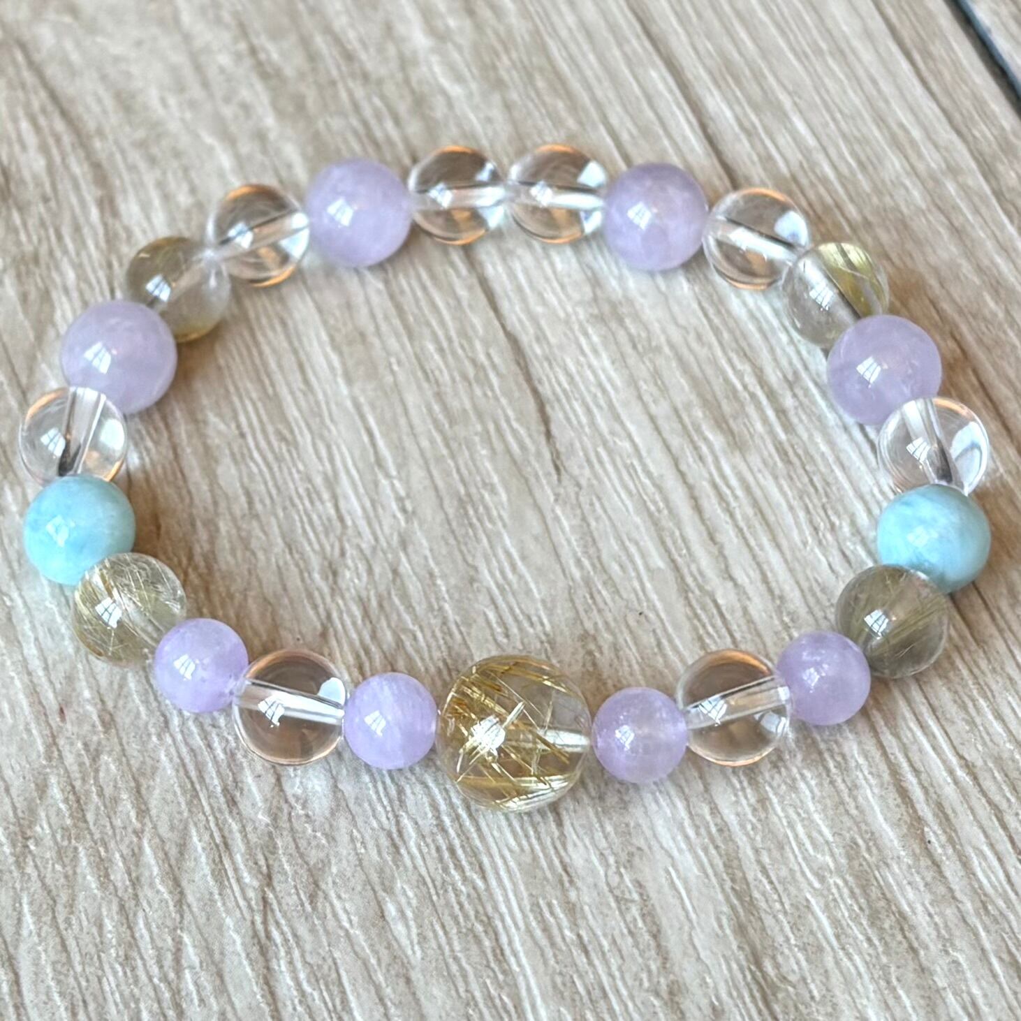 ストレスを緩和し幸せへと進む/ルチルクォーツ・ラリマー・ラベンダーアメジスト/天然石ブレスレット/パワーストーン