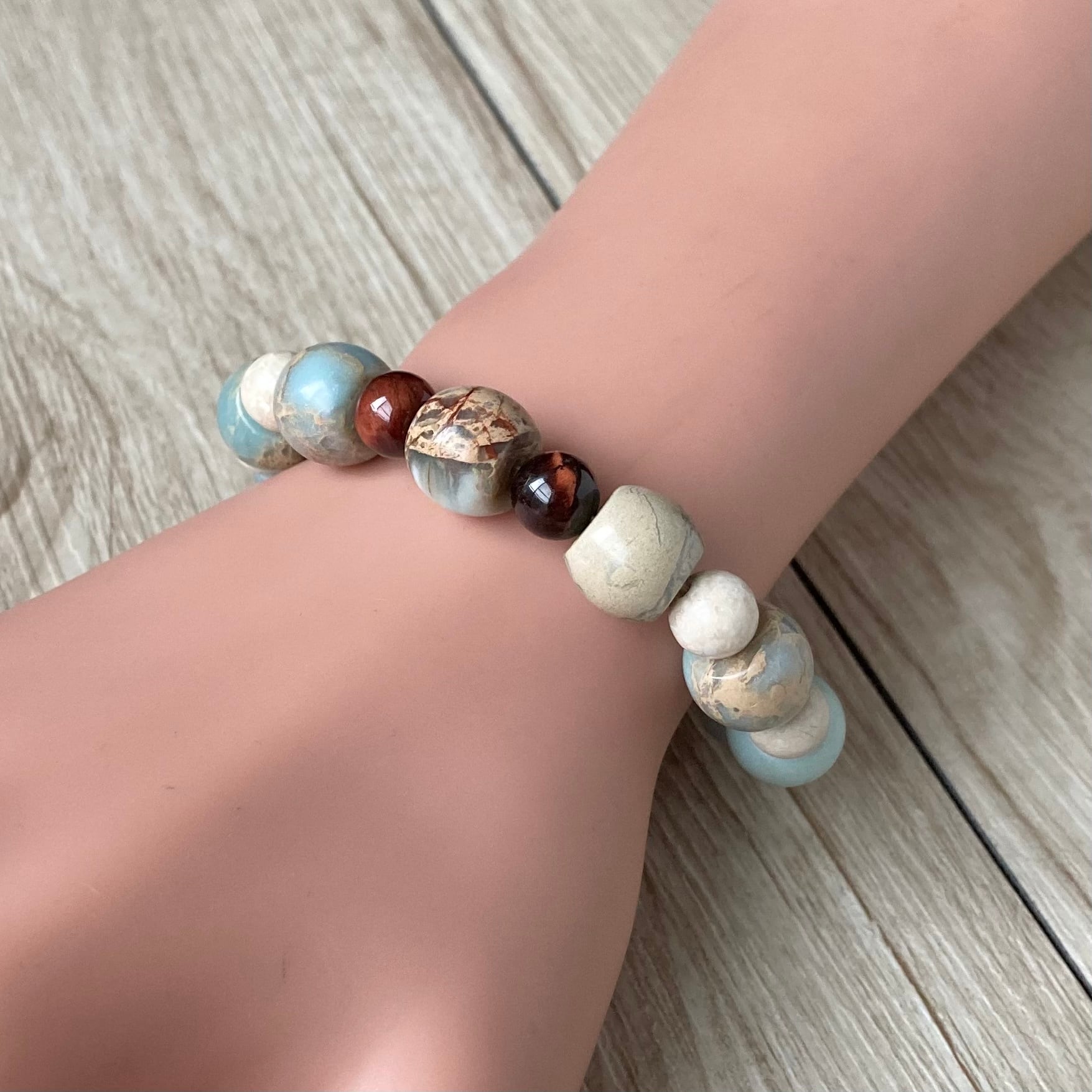 ストレスを緩和し人間関係を良好にする/インプレッション・リバーストーン・レッドタイガーアイ/パワーストーンブレスレット