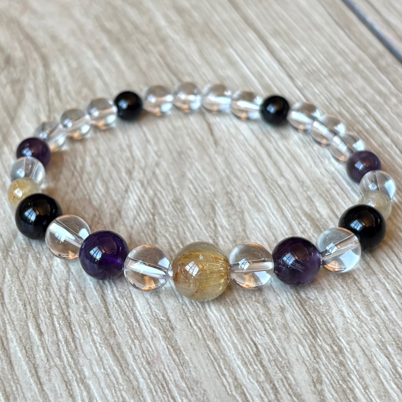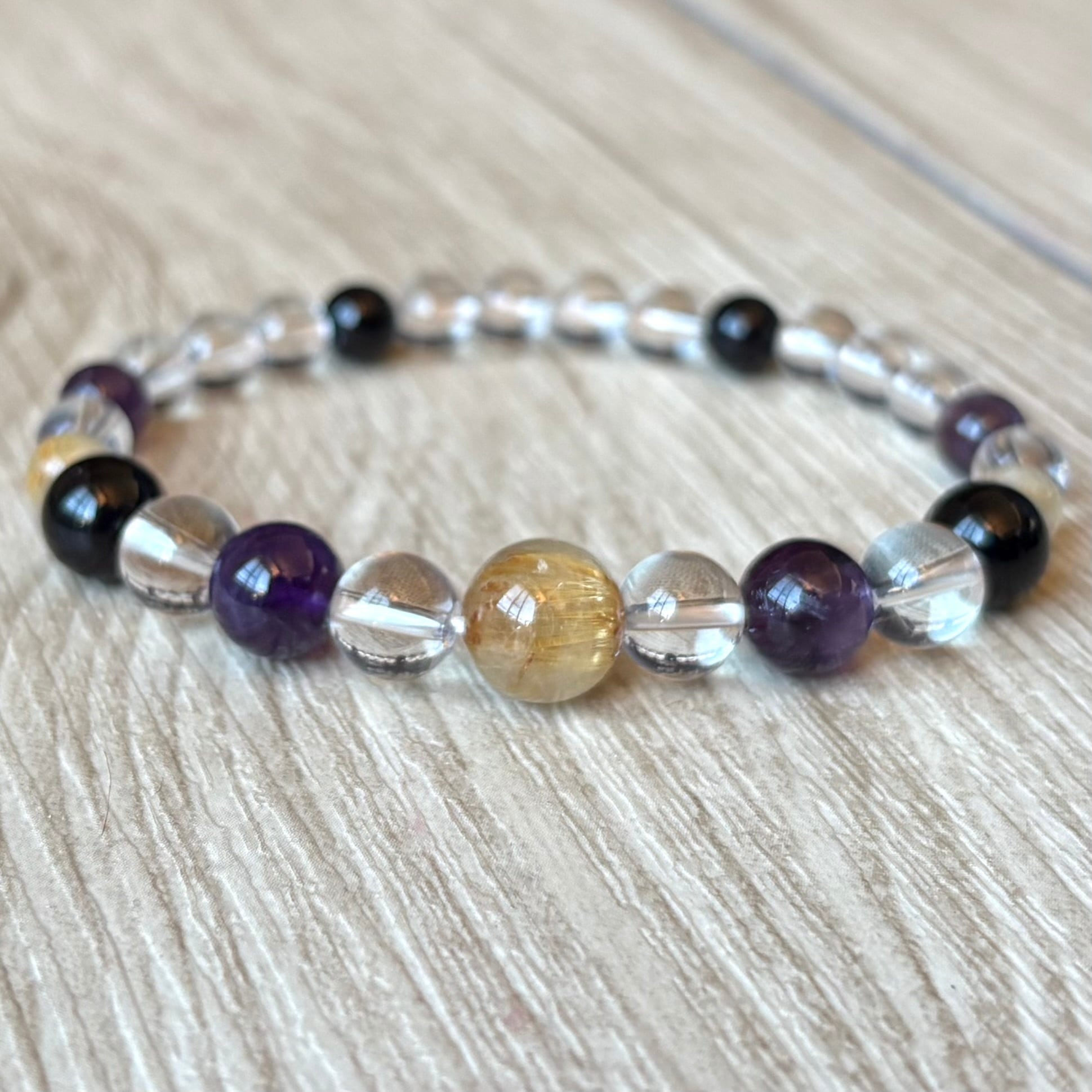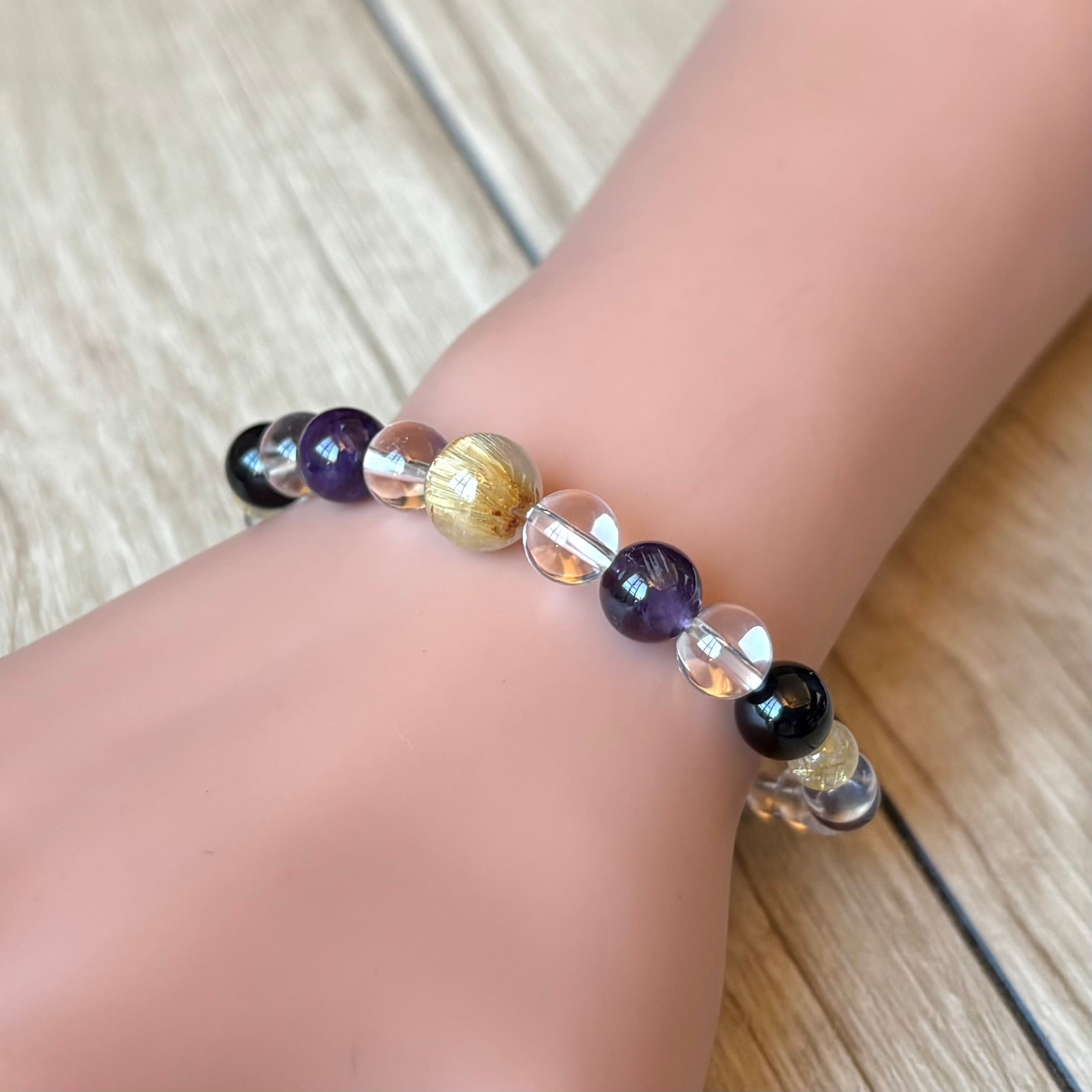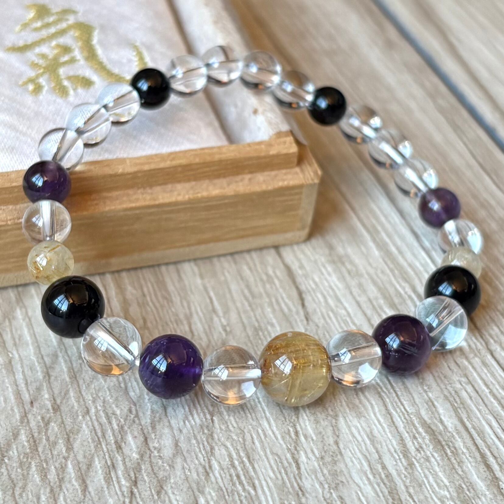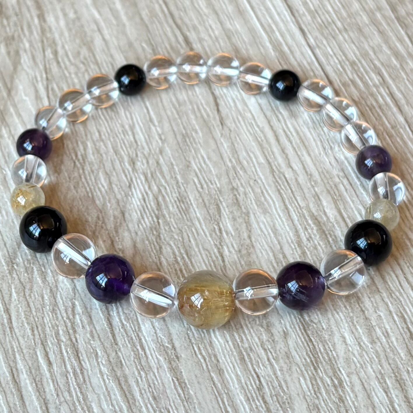 最強魔除けを味方に幸運を得る/ルチルクォーツ・モリオン・アメジスト・水晶/パワーストーンブレスレット