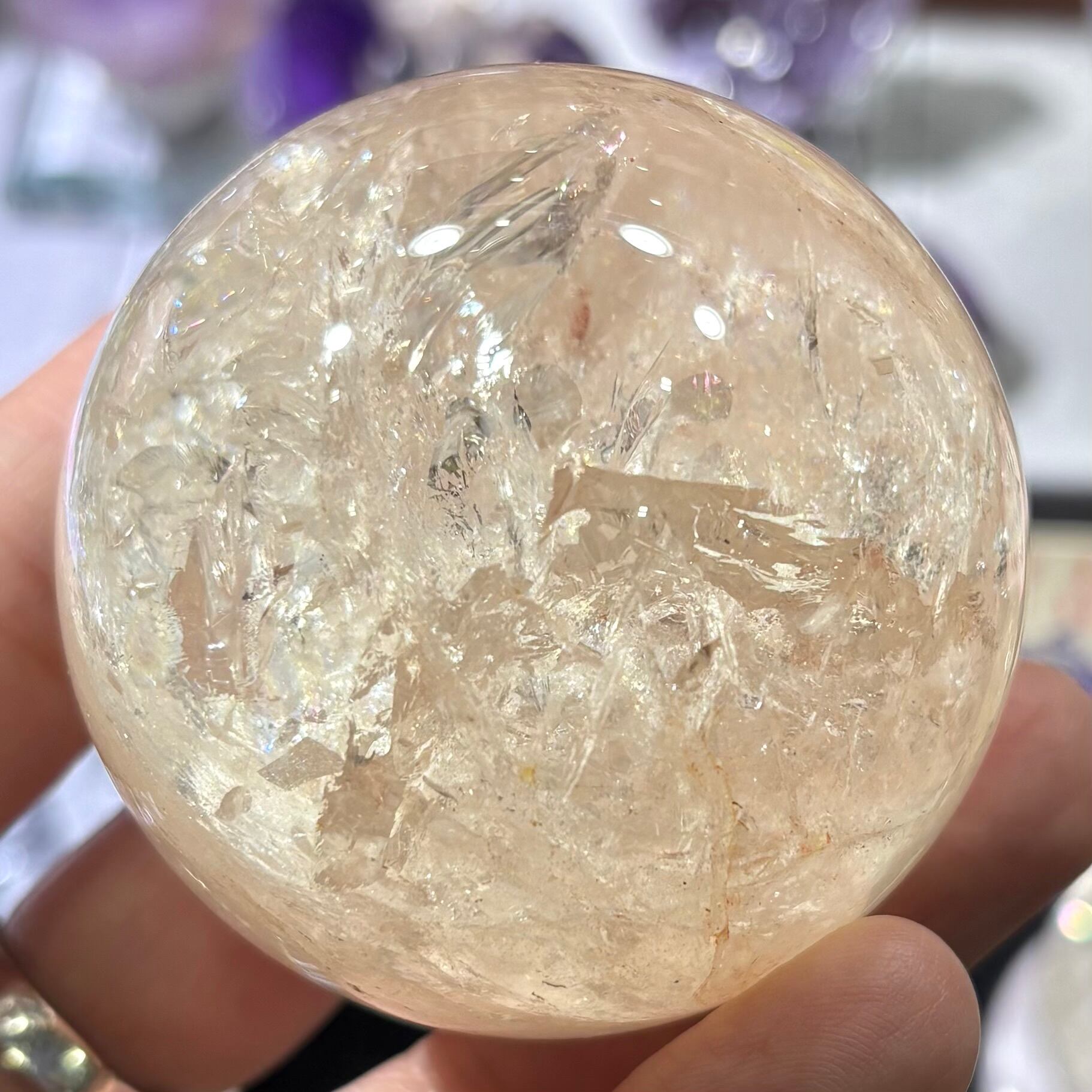 ピンクアゼツライト スフィア(271.4g/58mm) — 柔らかな光をたたえる淡桃色の結晶球 —