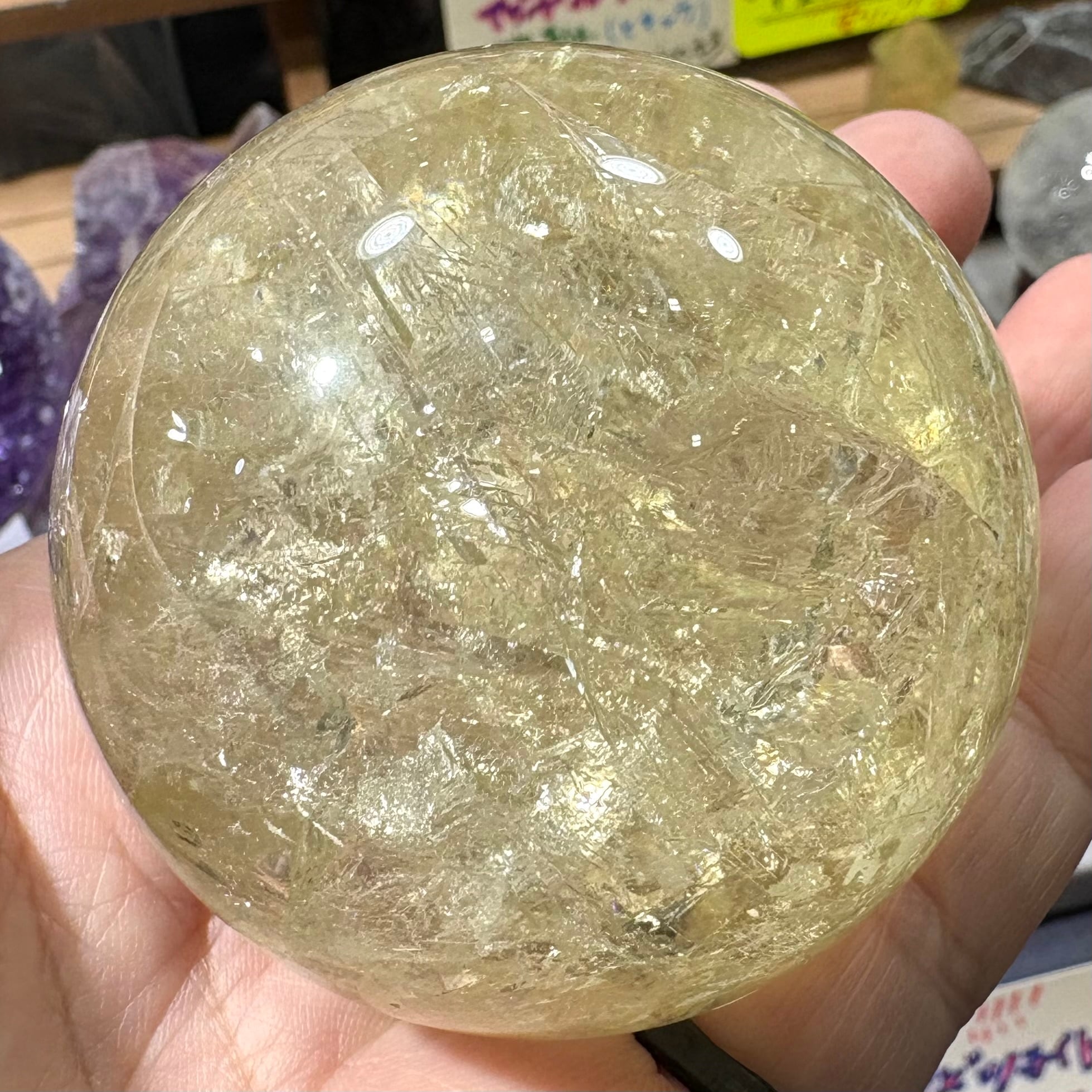 イエローアゼツライト スフィア(361.5g/63.7mm) — 光を包み込む、やさしい黄金色の結晶球 —