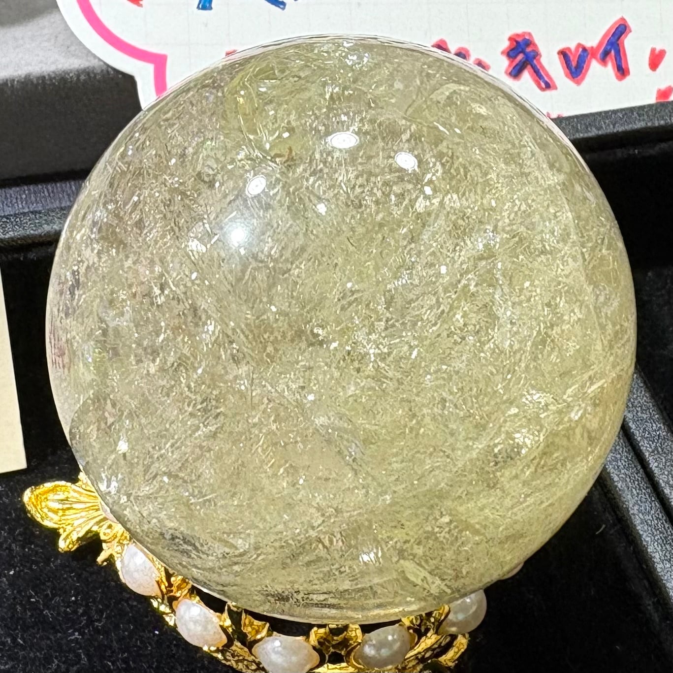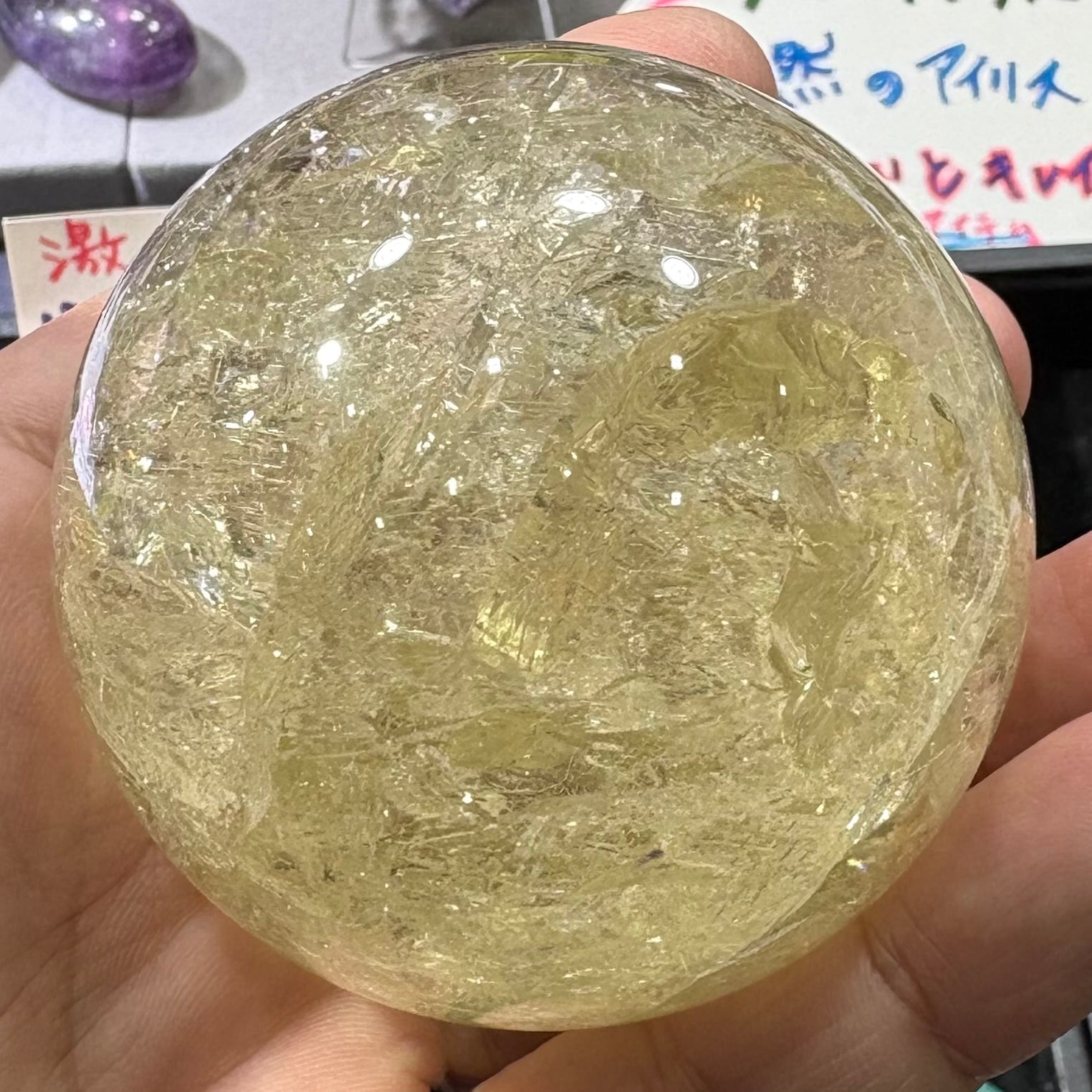 淡い黄金色の輝きが美しい、イエローアゼツライトのスフィアです。