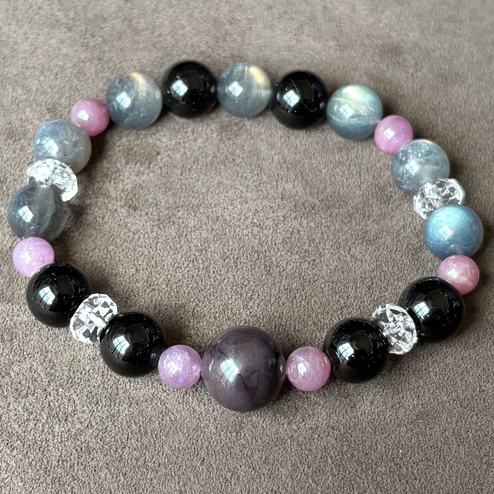 信念を貫き勝利を手にするパワーストーンブレスレット・天然石/ルビー・スギライト・モリオン・ラブラドライト・水晶