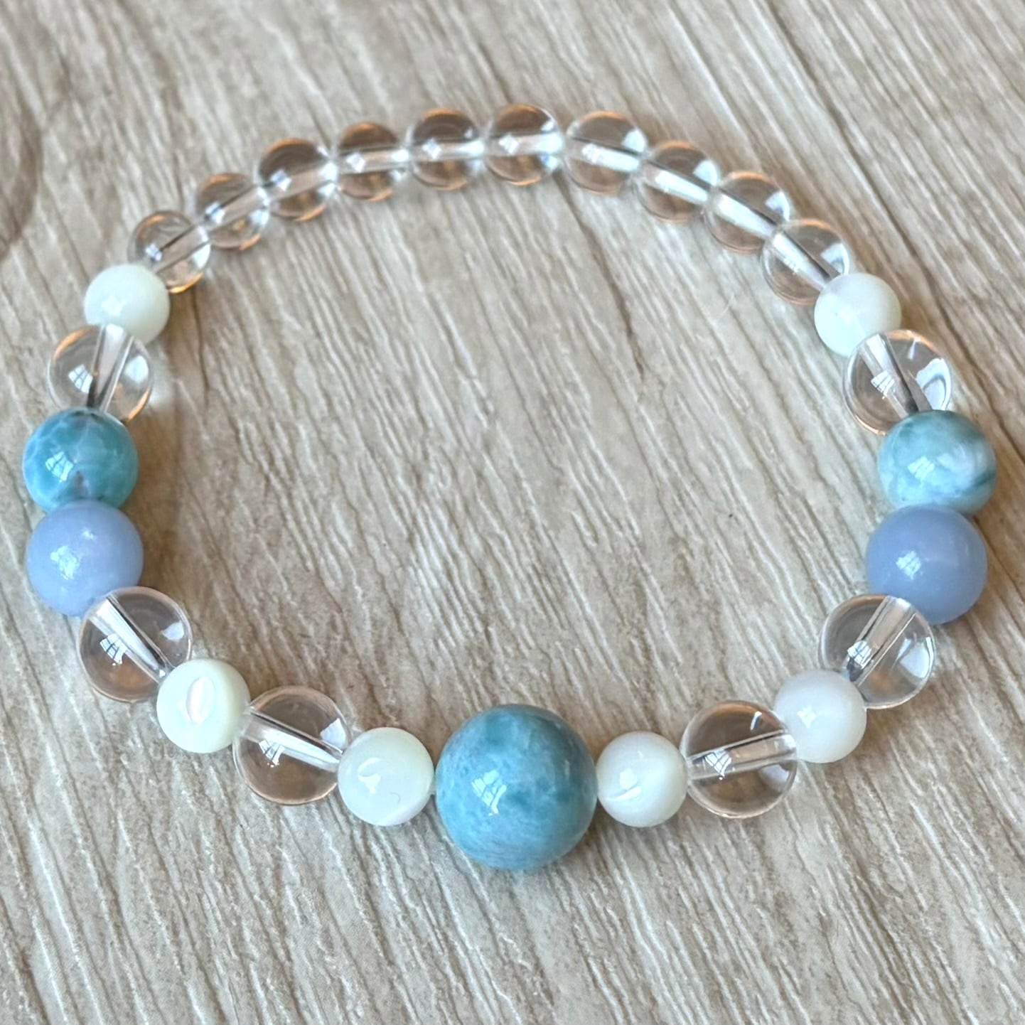心の愛と平和・そして究極の癒しを…/ラリマー・エンジェライト・マザーオブパール/天然石ブレスレット/パワーストーンブレスレット