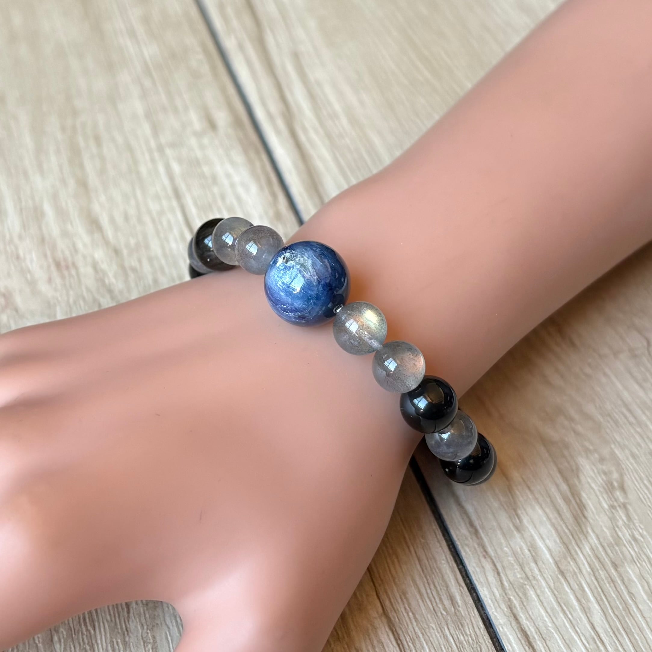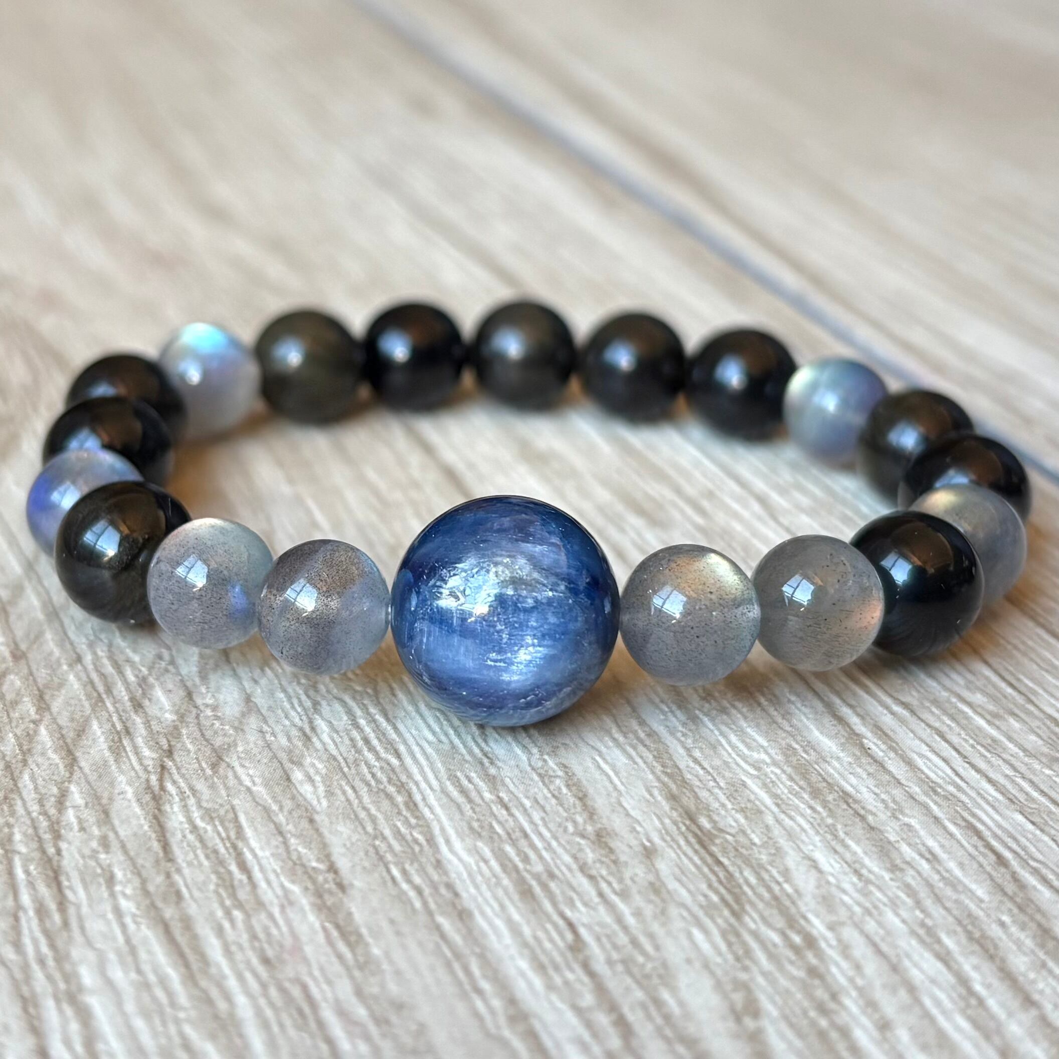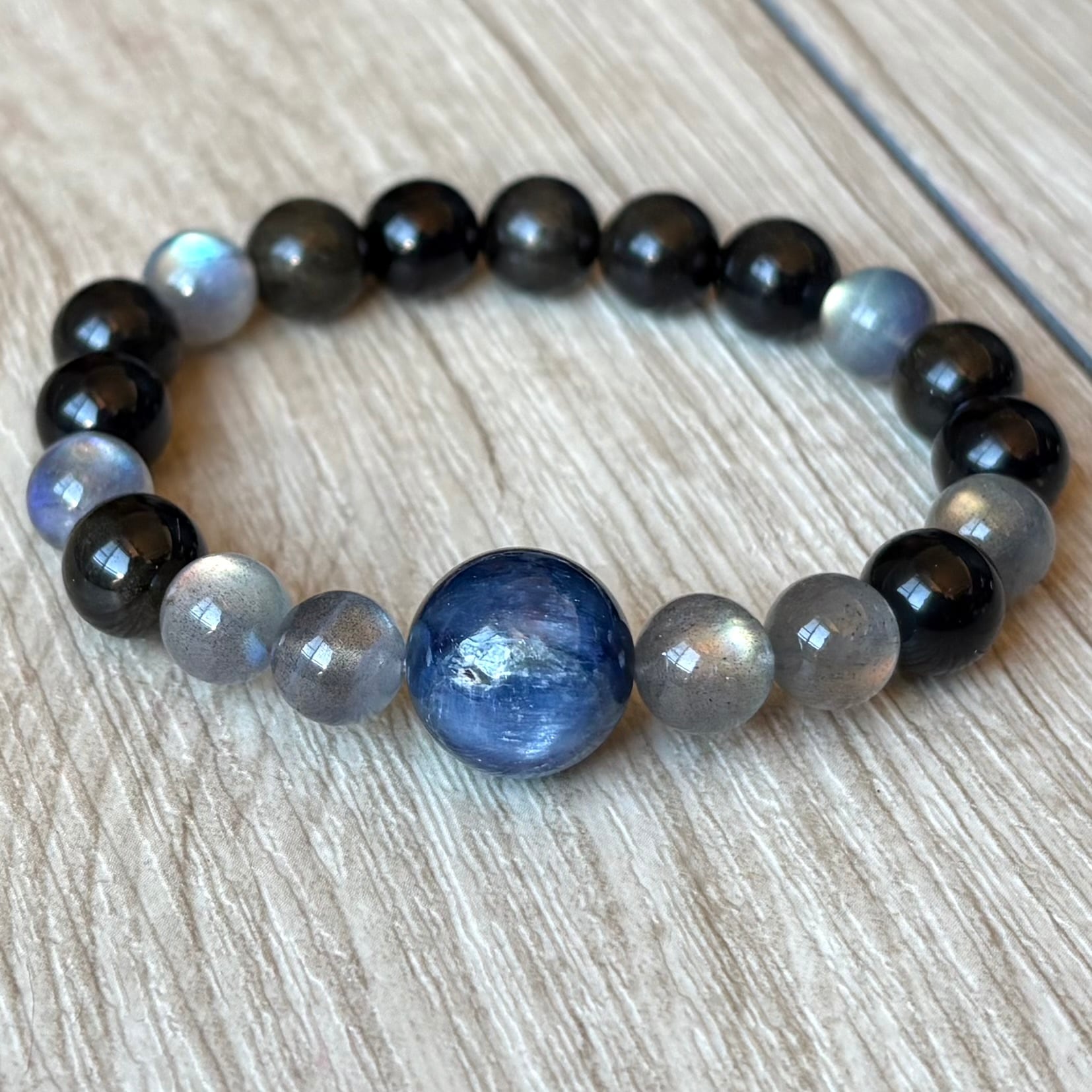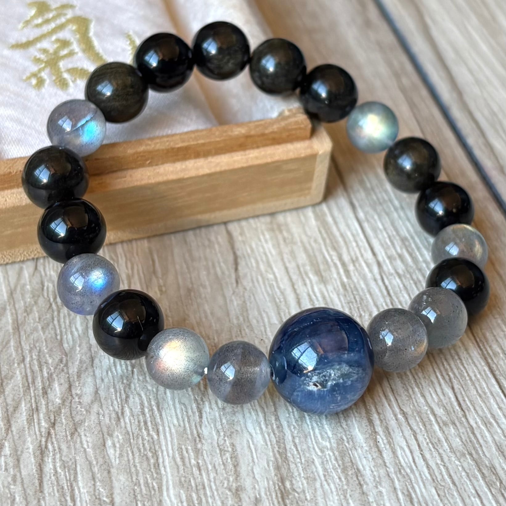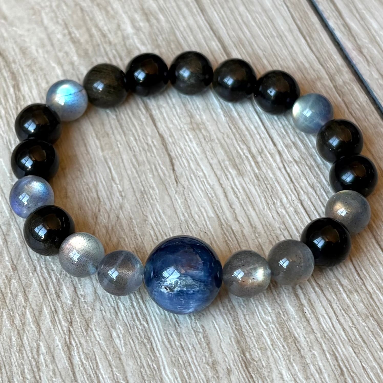 未来を見通す石で成功を収める パワーストーンブレスレット/カイヤナイト・ラブラドライト・ゴールデンオブシディアン