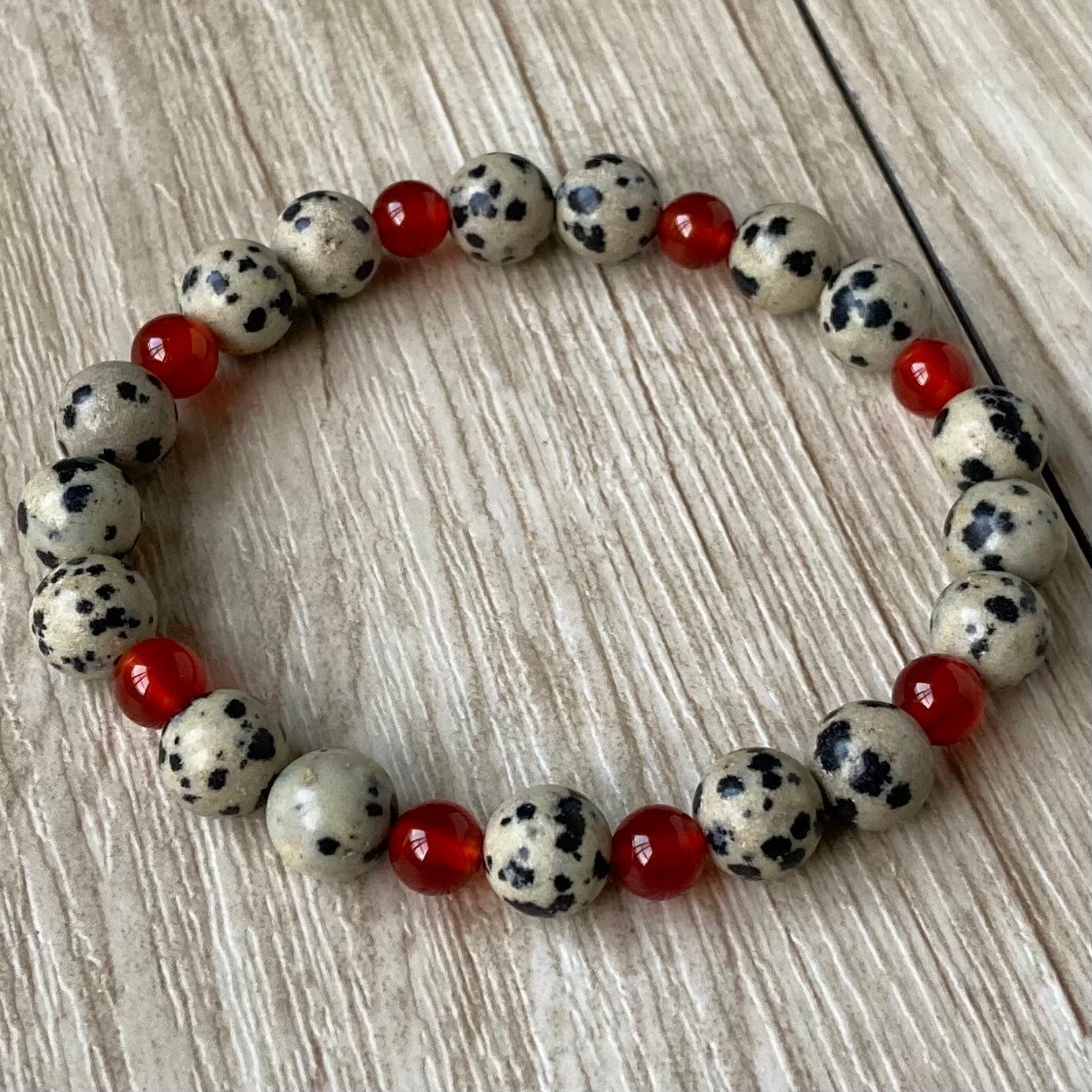 情熱と行動力を呼び覚まし豊かさを与える パワーストーンブレスレット/ダルメシアンジャスパー、レッドアゲート