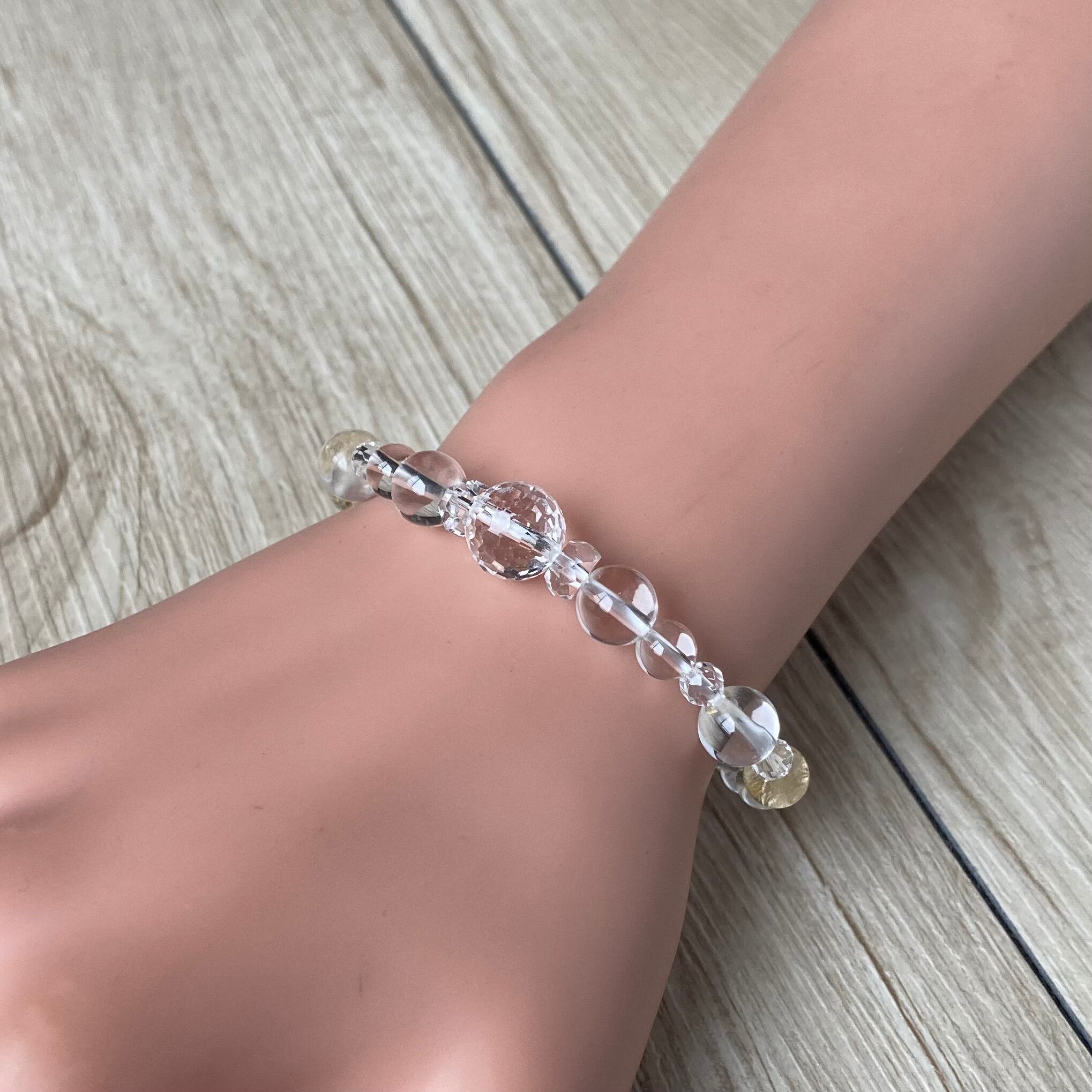 水晶の美しさとシトリンの透き通る綺麗な黄色をパワーストーンブレスレットとしてお楽しみください。