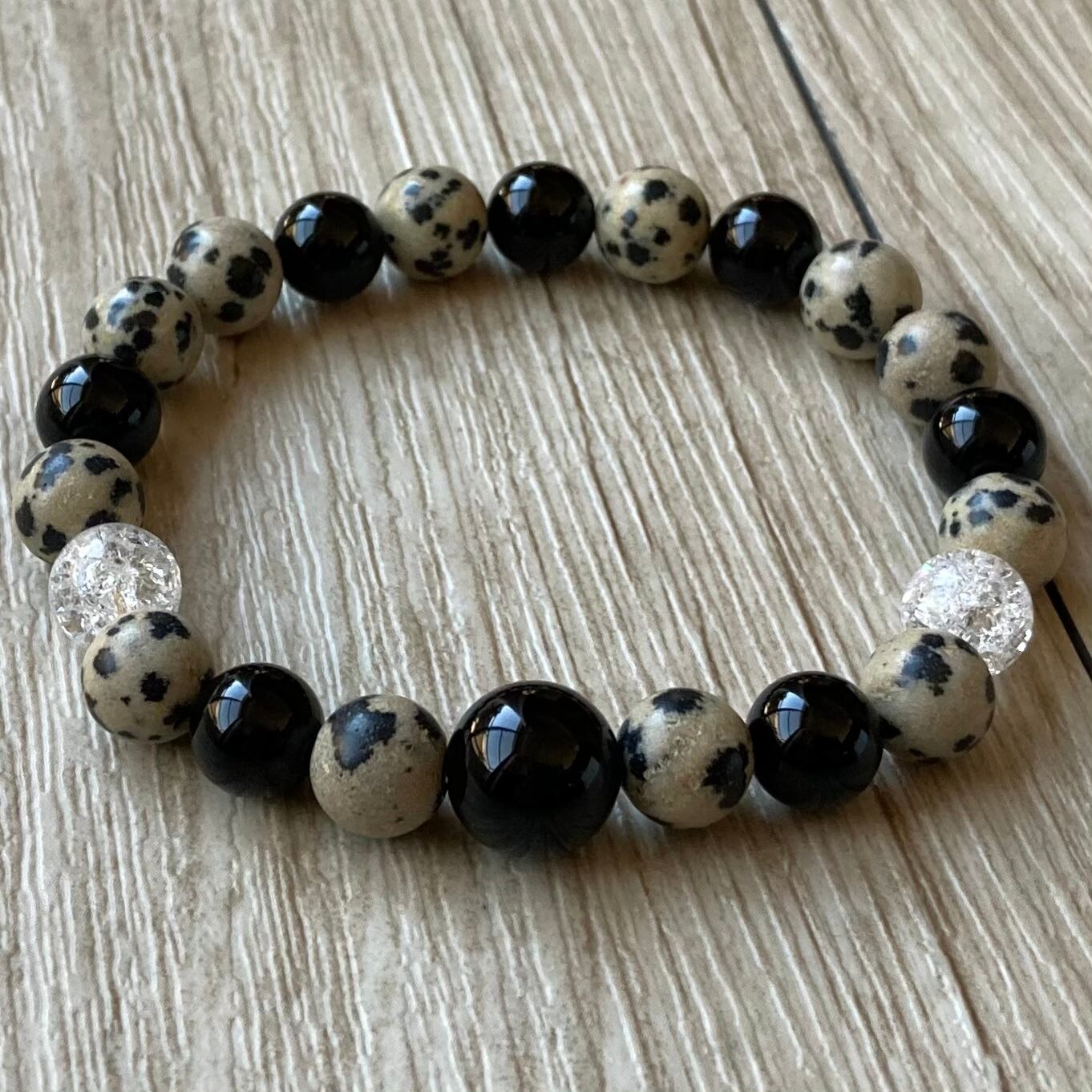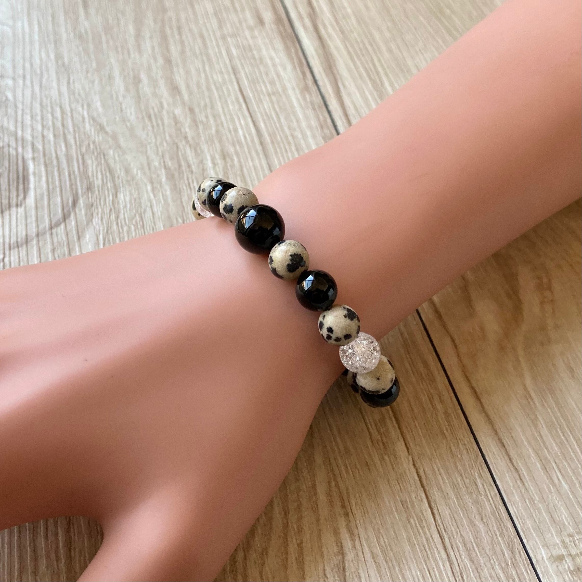 良い方向に自分自身を戒めステップアップの為の行動力をパワーストーンブレスレット ダルメシアンジャスパー・オニキス・水晶
