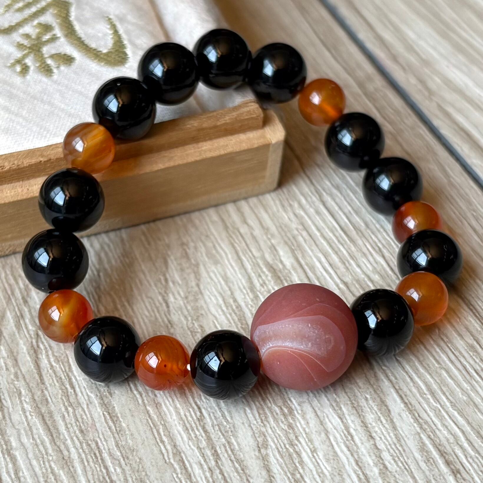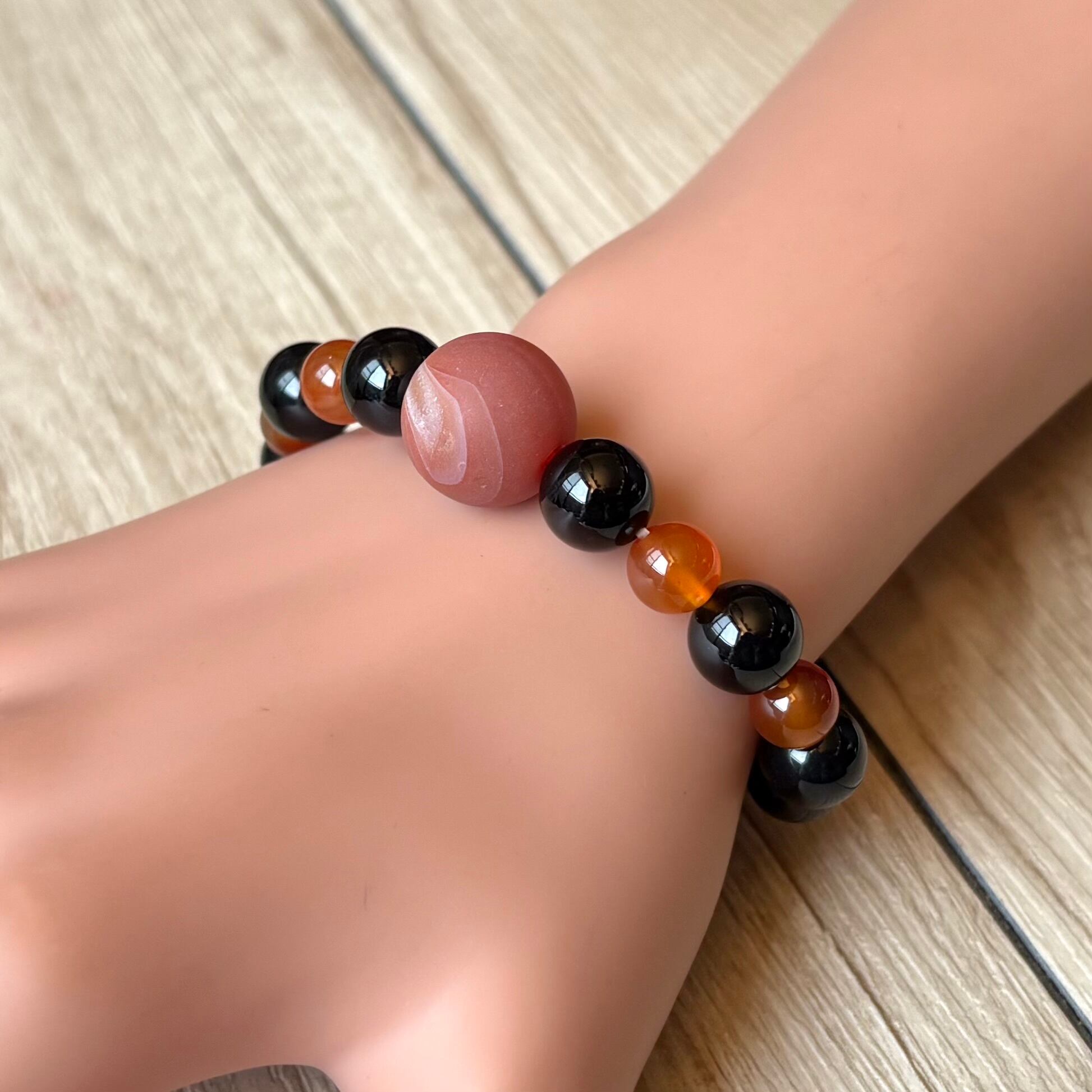 意思を強く持ち沈んだ気持ちを吹き飛ばす天然石/オニキス、赤縞メノウ /天然石ブレスレット/パワーストーン