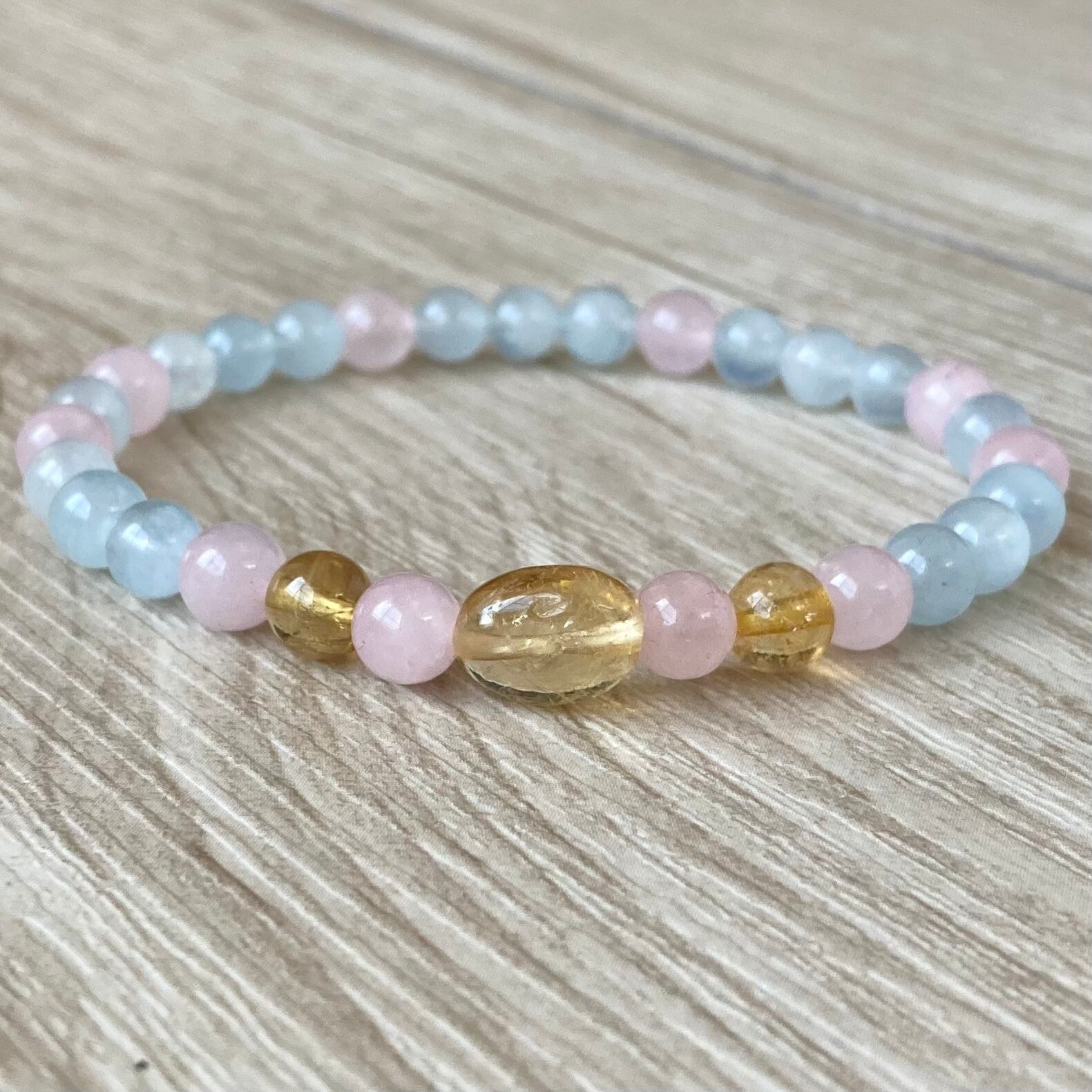 幸せを運ぶお守り/シトリン・ローズクォーツ・アクアマリン/パワーストーンブレスレット/天然石