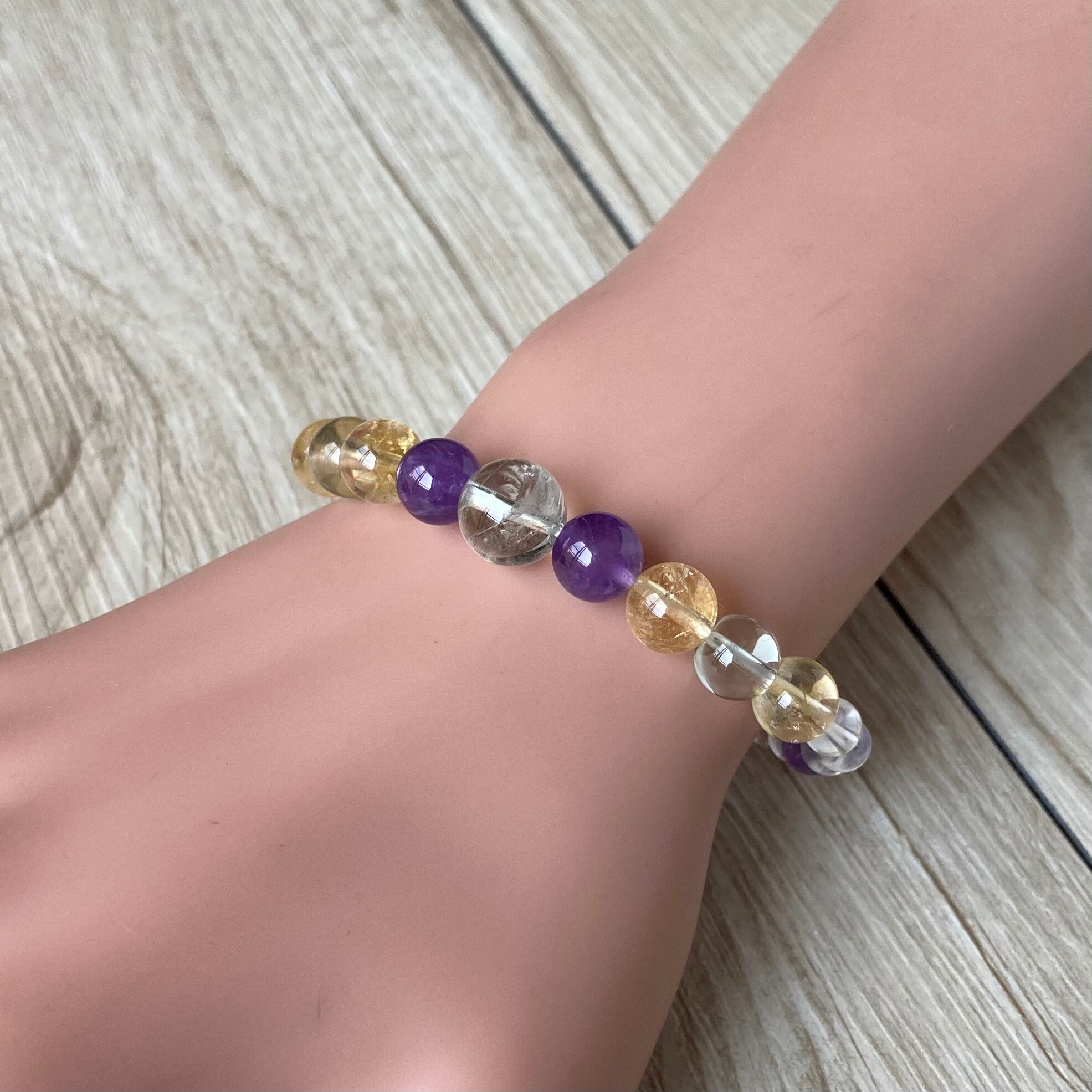 愛と幸運の石でラッキーを呼び寄せる/パワーストンブレスレット/ グリーンアメジスト・アメジスト・水晶・シトリン/天然石