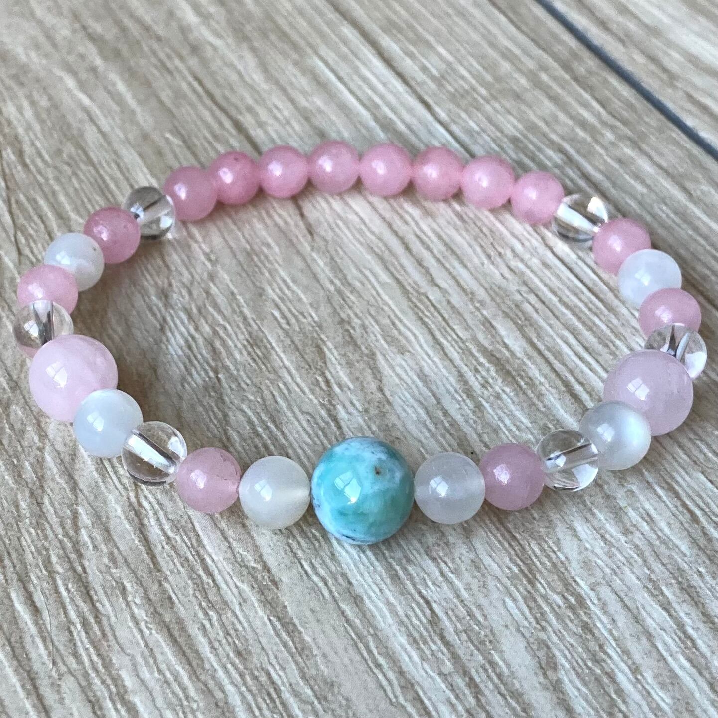 穏やかな海に揺られ心を大らかな愛で満たす/パワーストーンブレスレット/ラリマー・ローズクォーツ・ムーンストーン/サンキュープライス‼︎/天然石