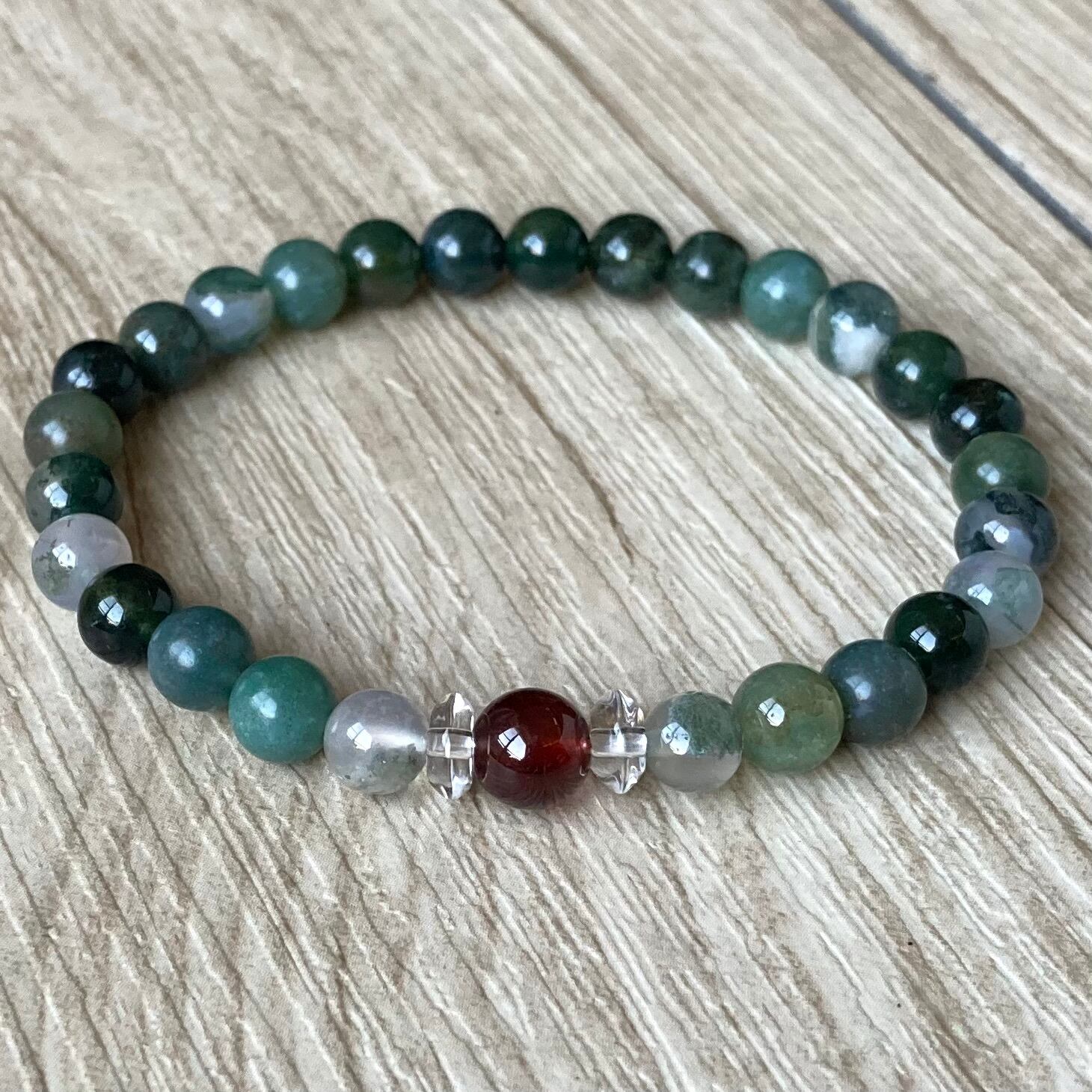 ストレスを緩和し努力を実らせる/パワーストーンブレスレット/オレンジガーネット・モスアゲート・水晶/天然石