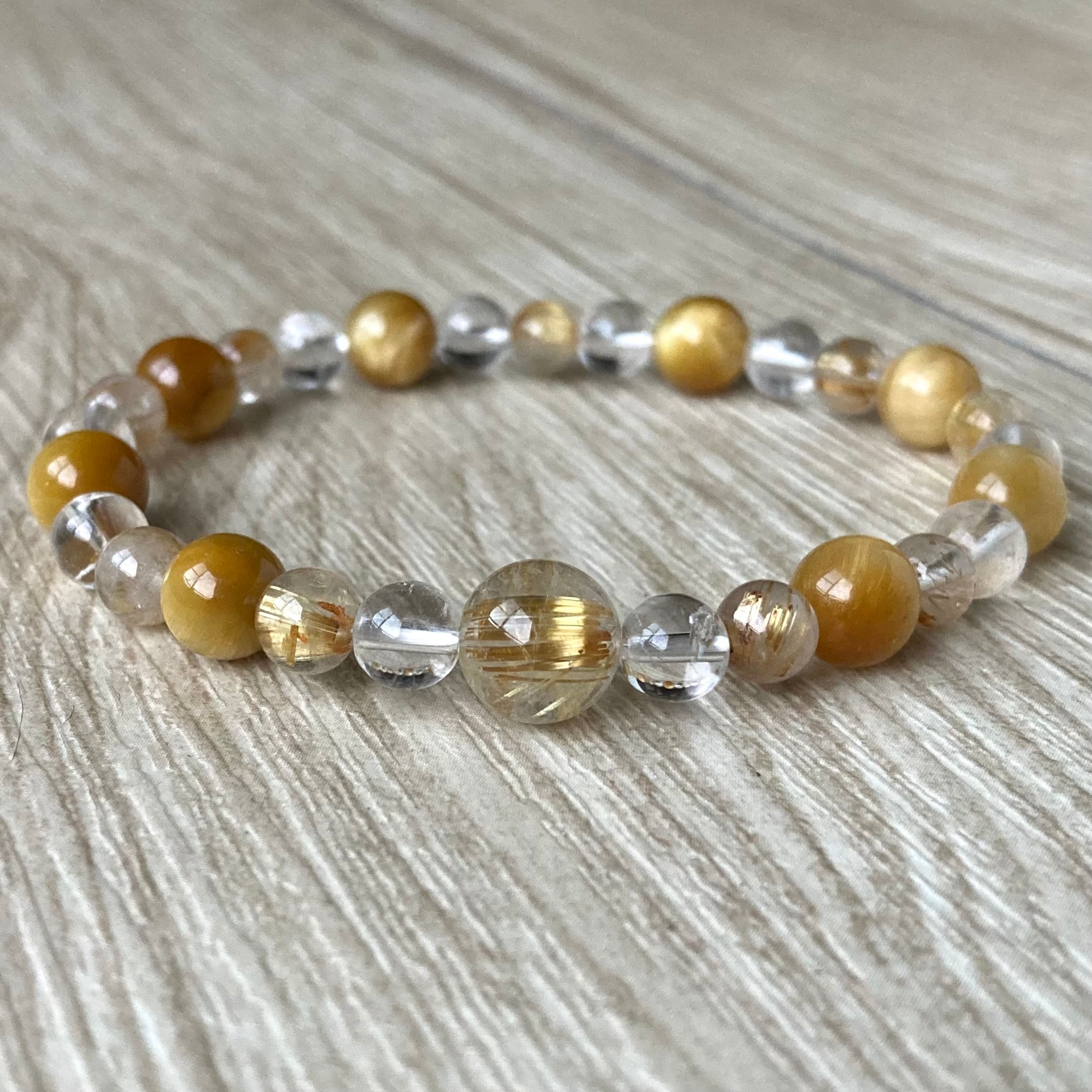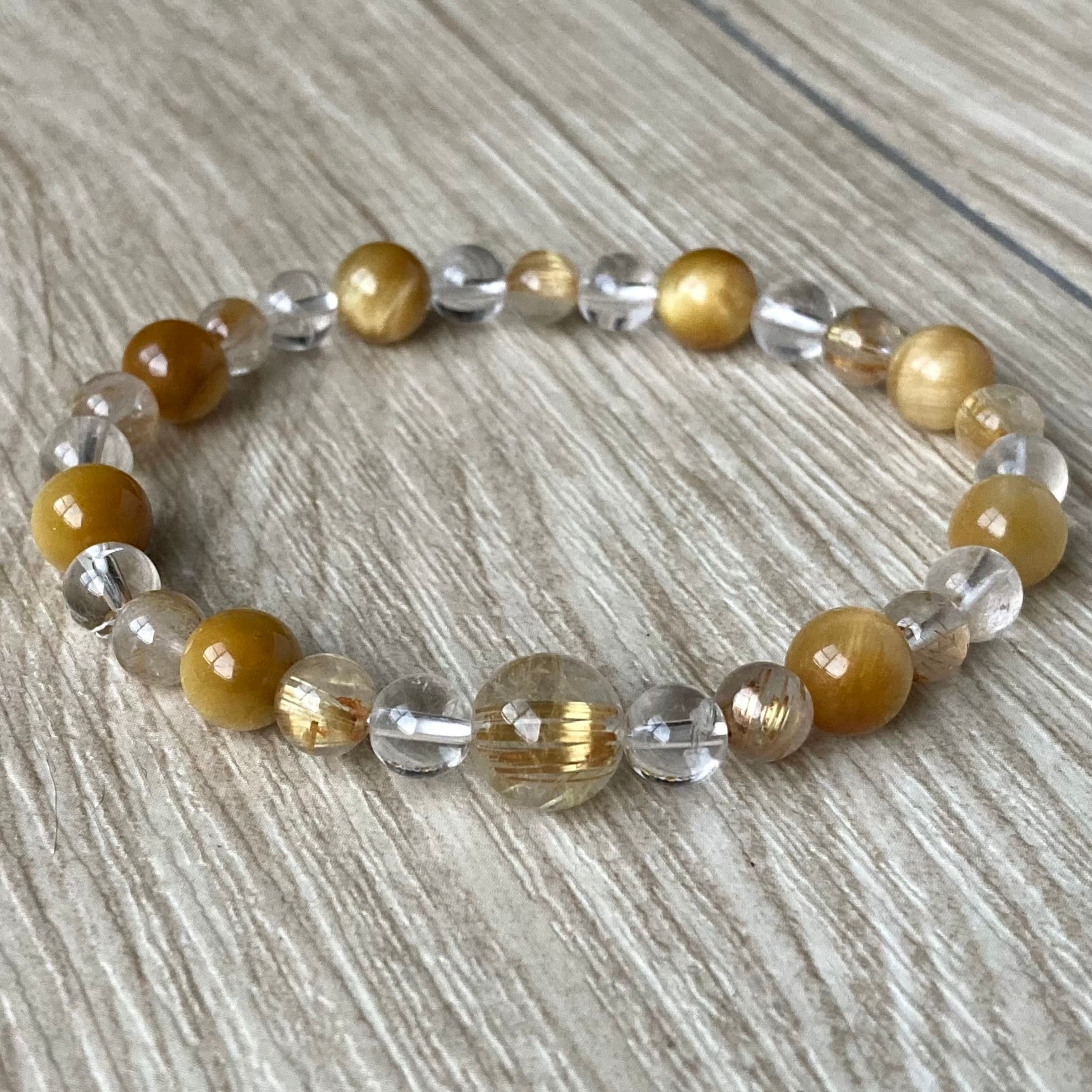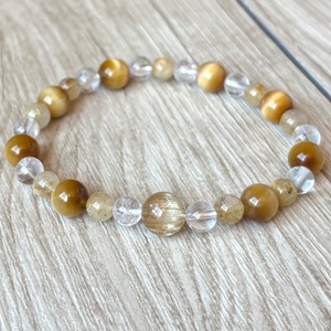 黄金の目で幸運をつかむ/ルチルクオーツ・ゴールデンタイガーアイ/パワーストーンブレスレット