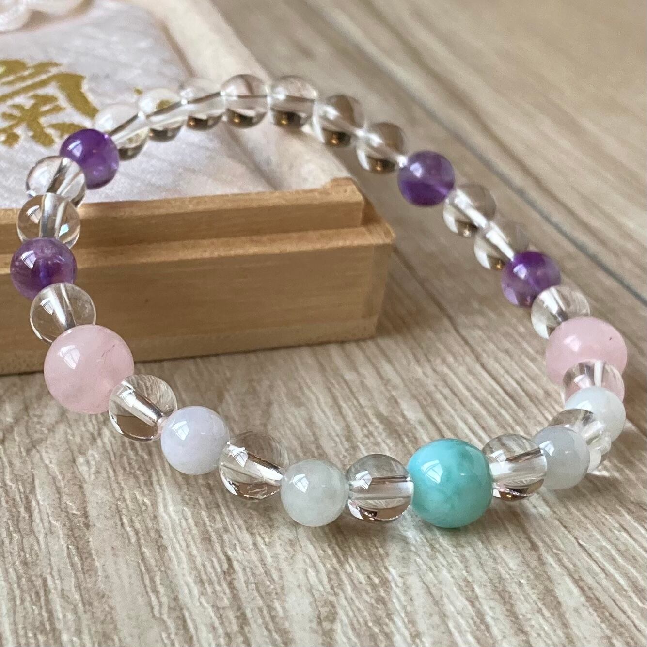 肩の力を抜き内面から美しくなる/ラリマー・翡翠・ローズクォーツ・アメジスト・水晶・パワーストーンブレスレット