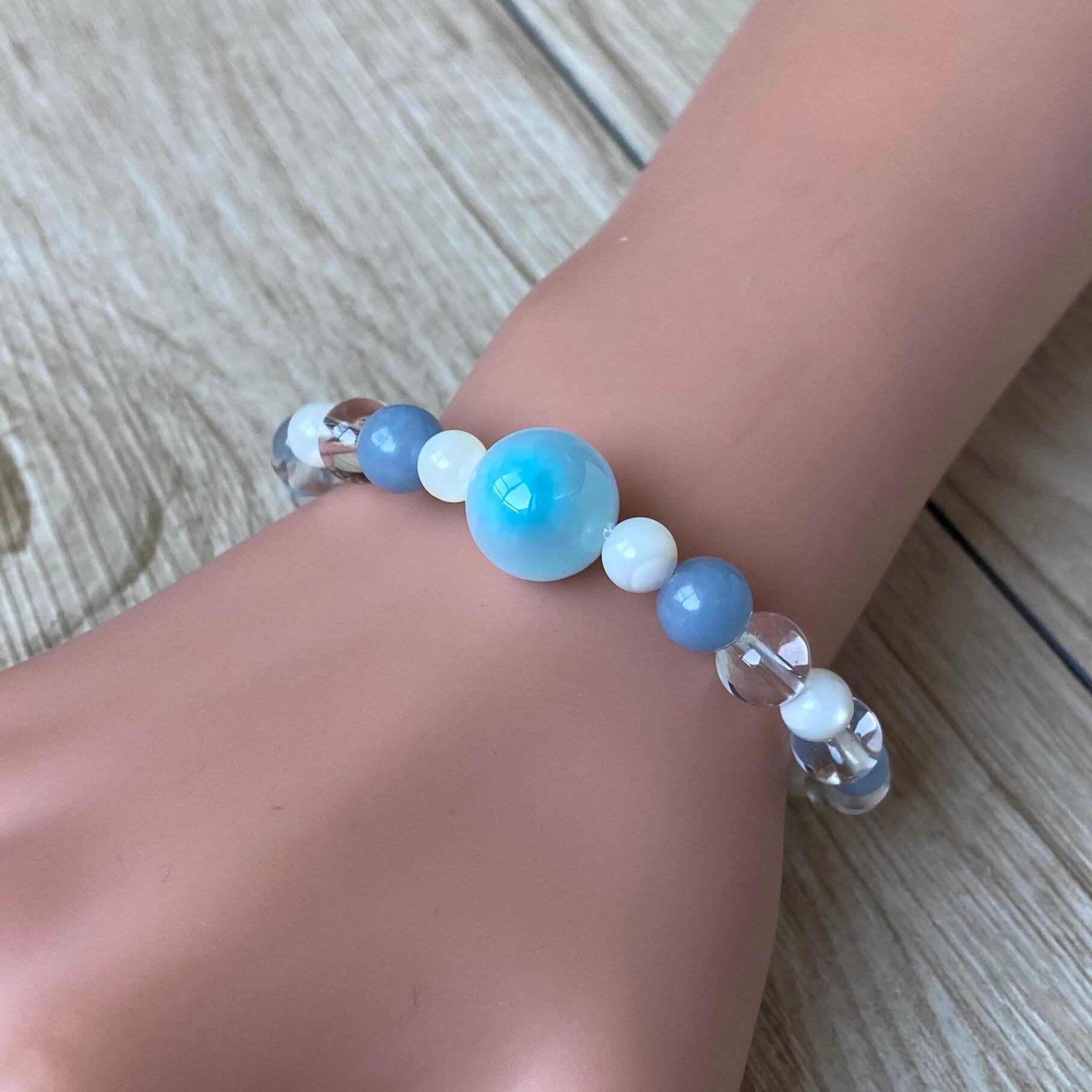 心と愛の平和、そして最高の癒しを…/13ミリ大粒ラリマー・マザーオブパール/パワーストーンブレスレット
