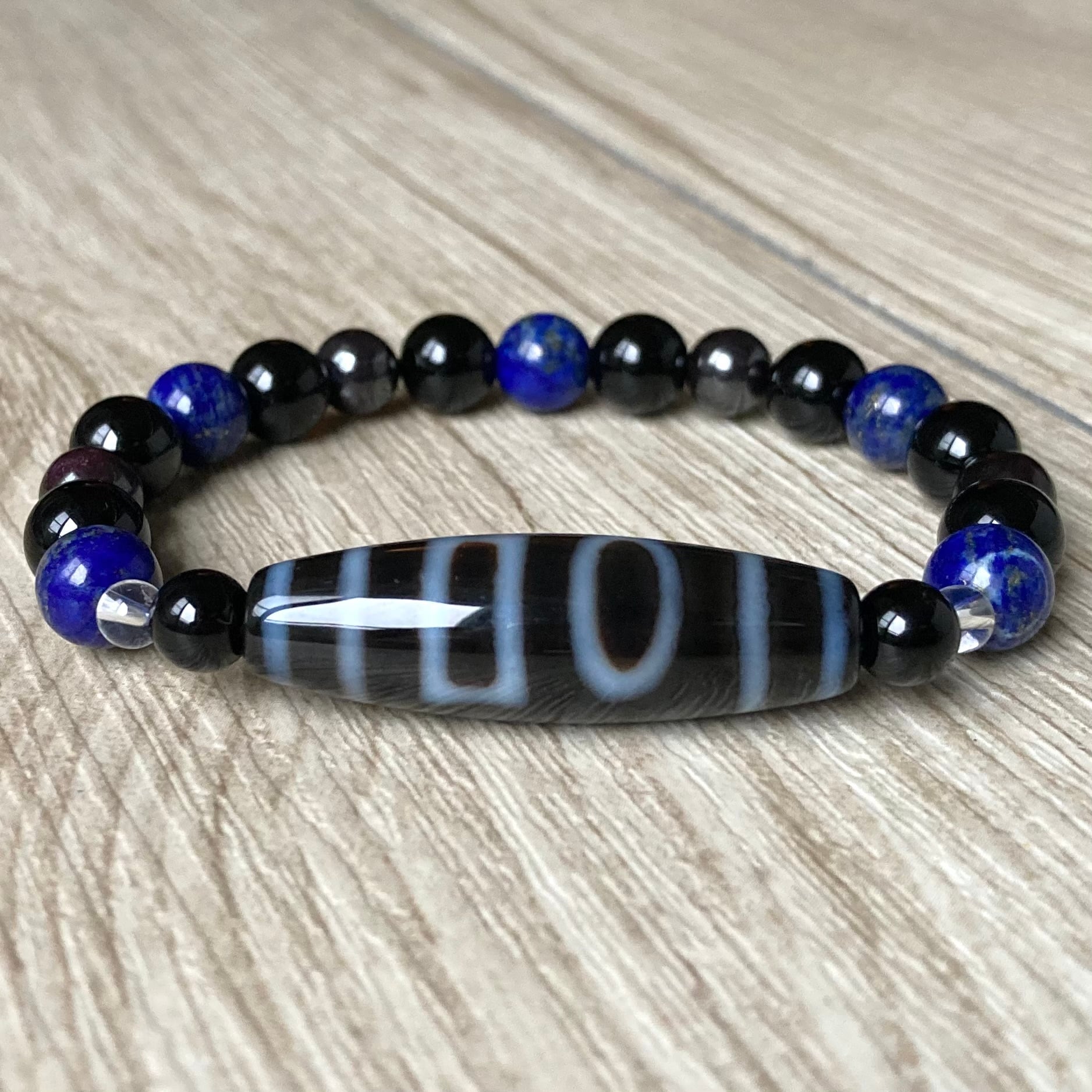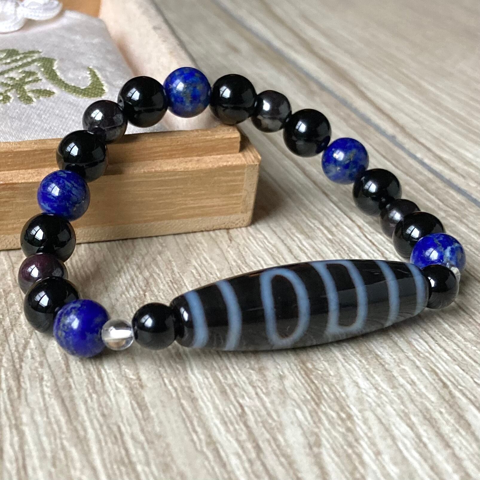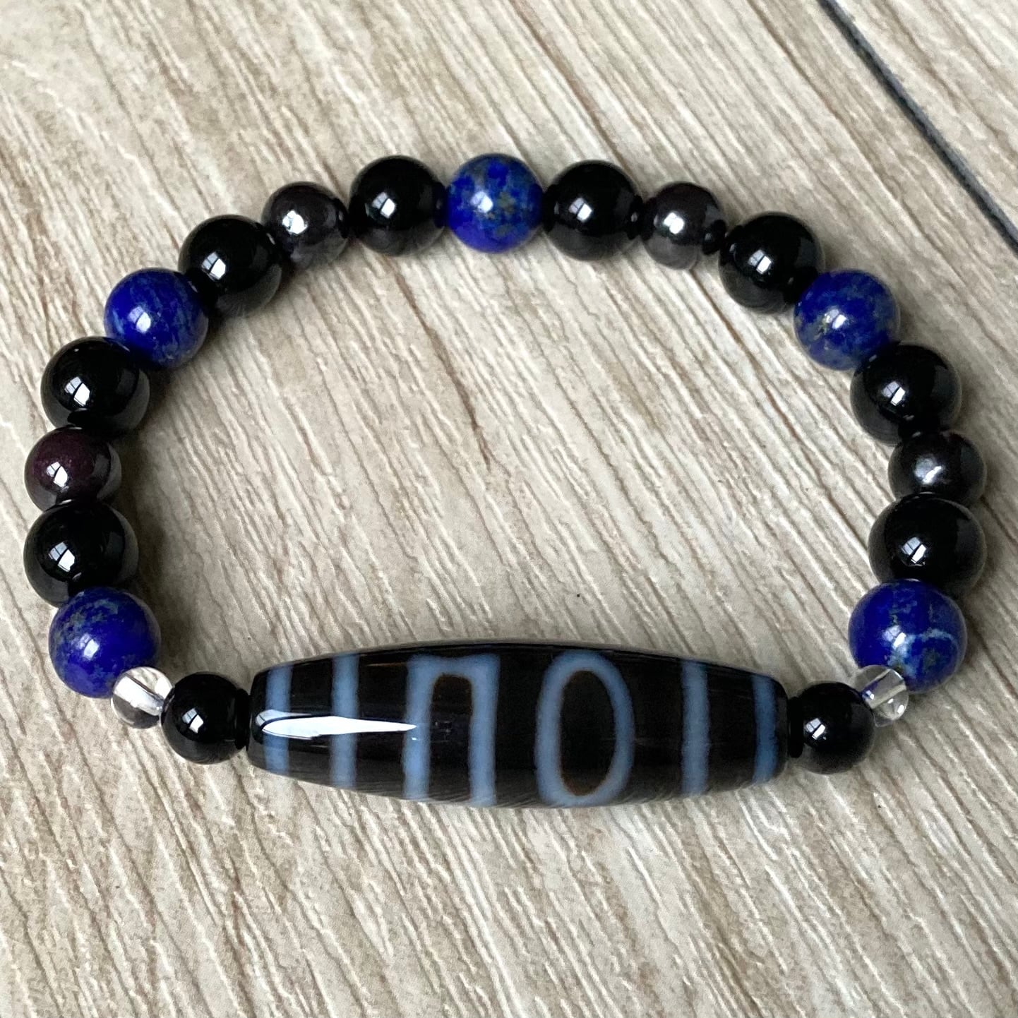 悪い運を良い運へと導く/双天地天珠・モリオン・ラピスラズリ ・スギライト・水晶/パワーストーンブレスレット/天然石ブレスレット