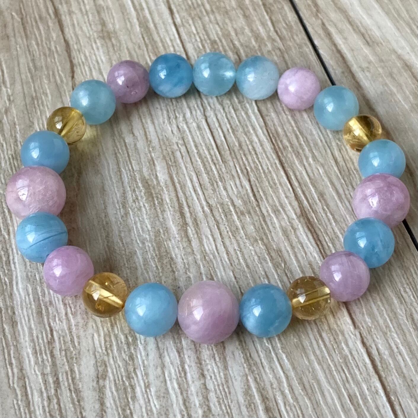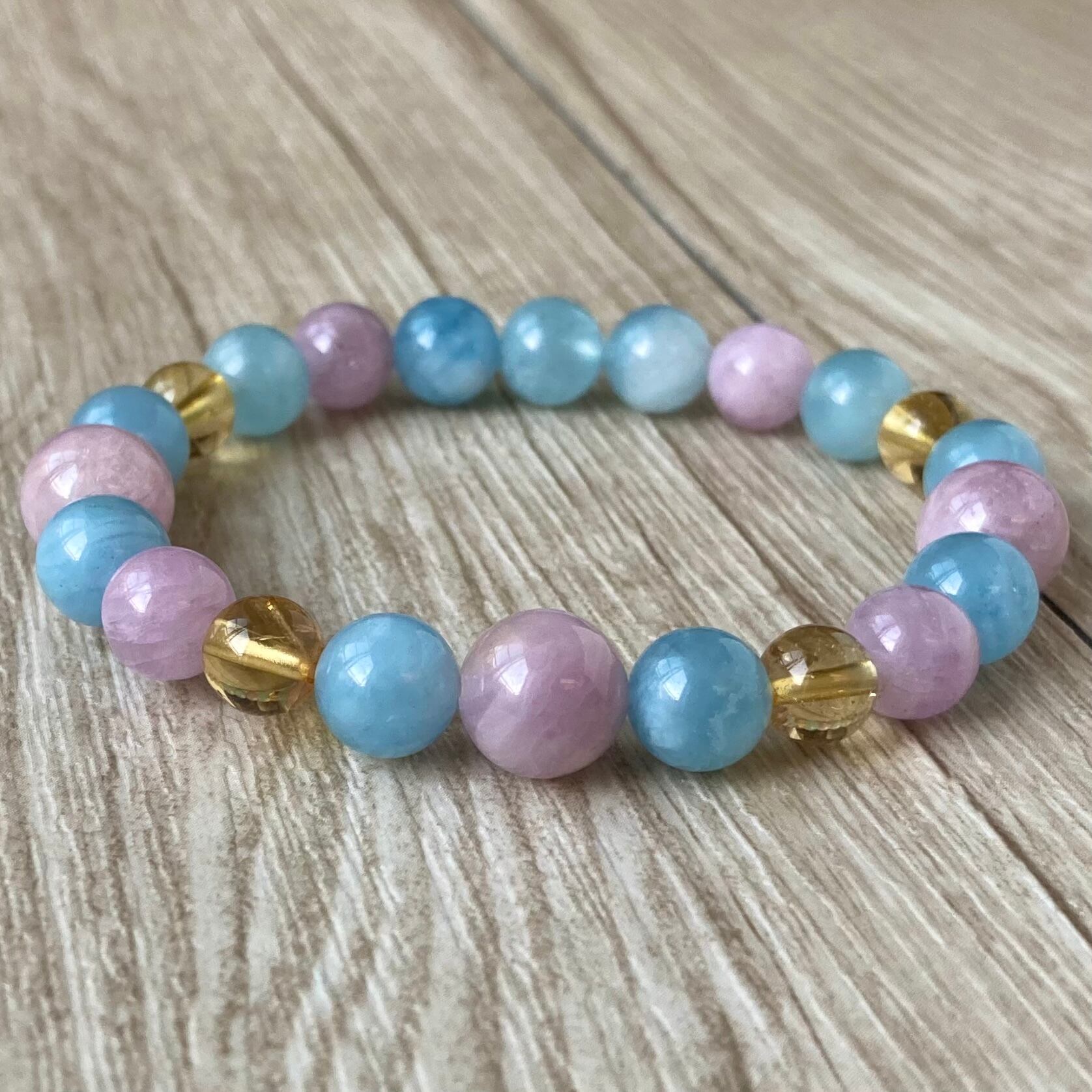 人間性を高め富を得る/クンツァイト・アクアマリン・シトリン/パワーストーンブレスレット