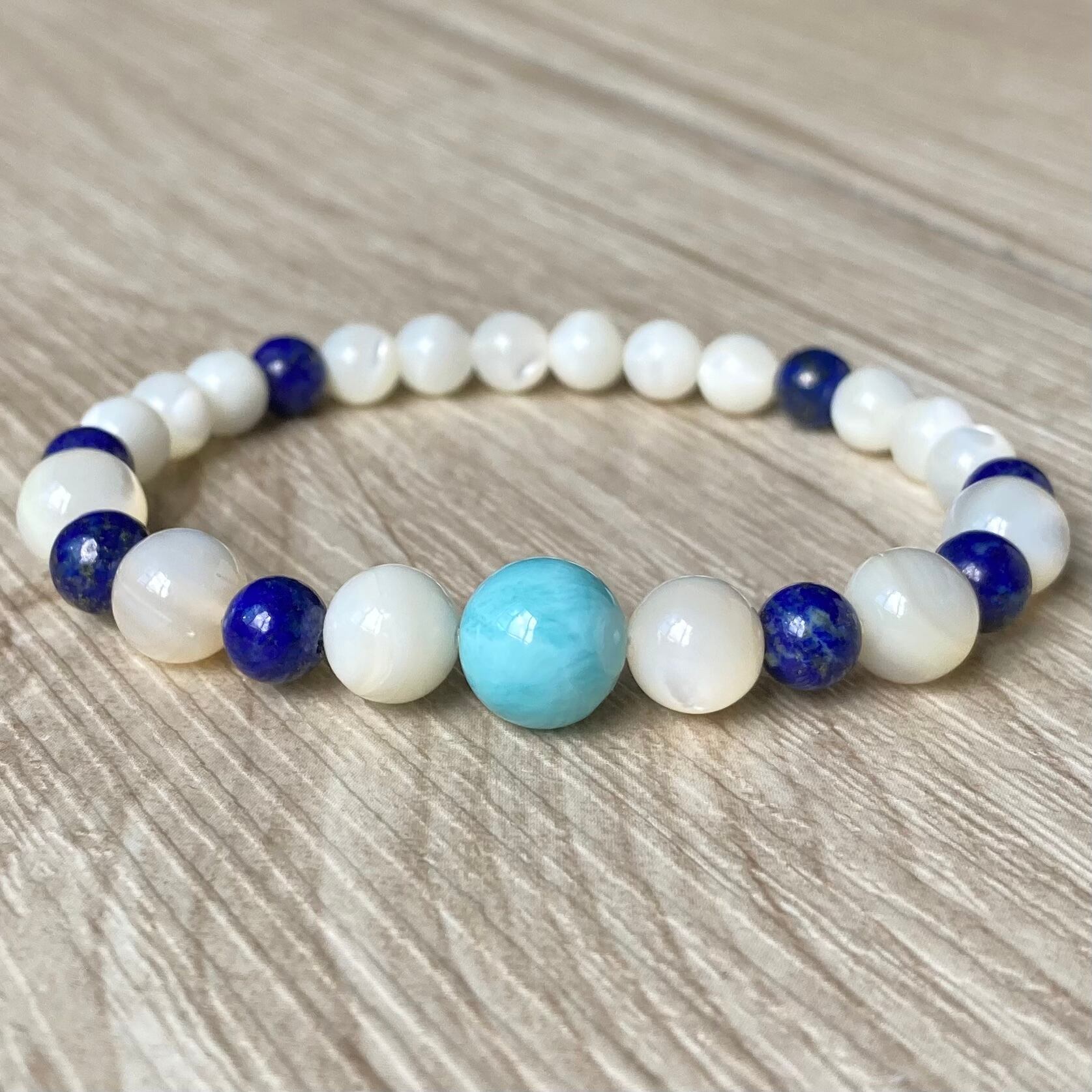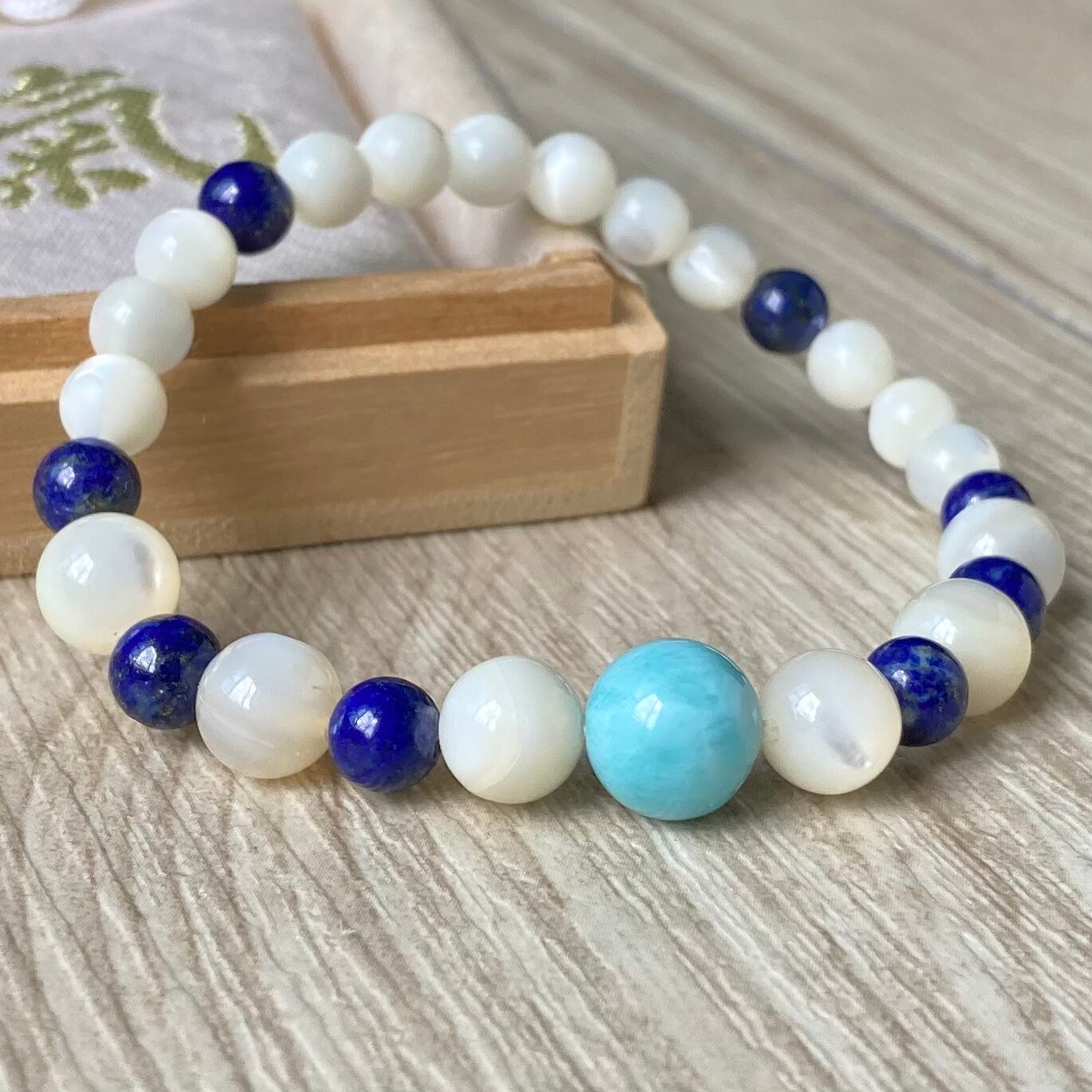 試練を乗り越え幸運を得る パワーストーンブレスレット/ラリマー・マザーオブパール・ラピスラズリ
