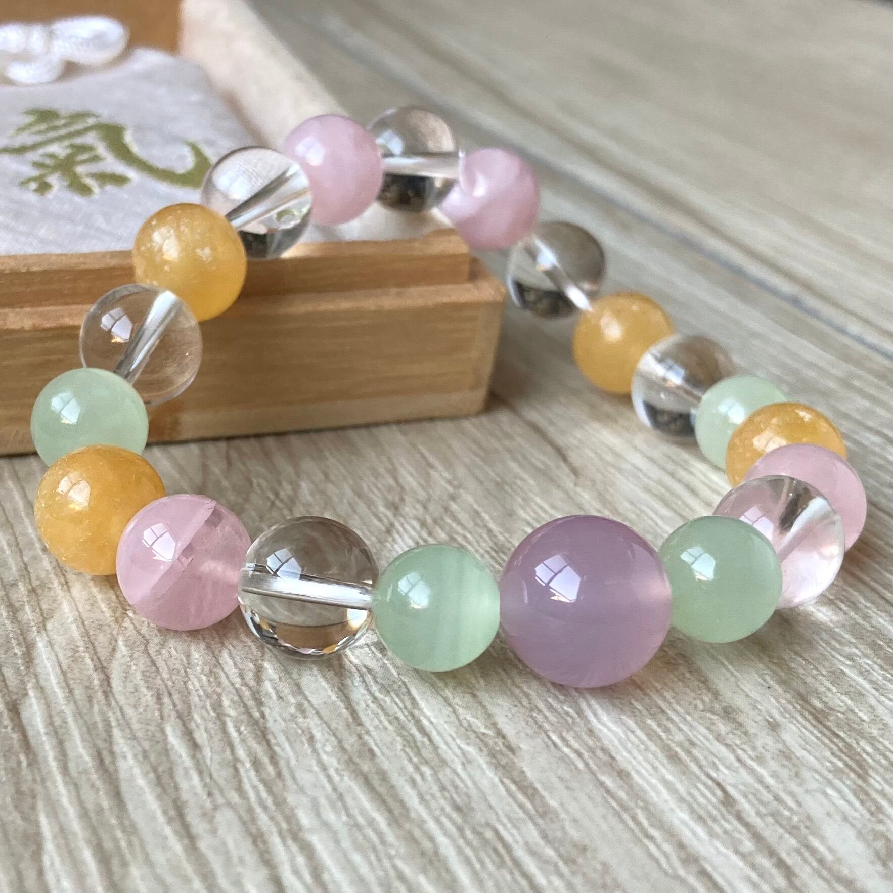 感情を安定させる/ラベンダーカルセドニー・グリーンカルサイト・ローズクォーツ・水晶/パワーストーンブレスレット/天然石