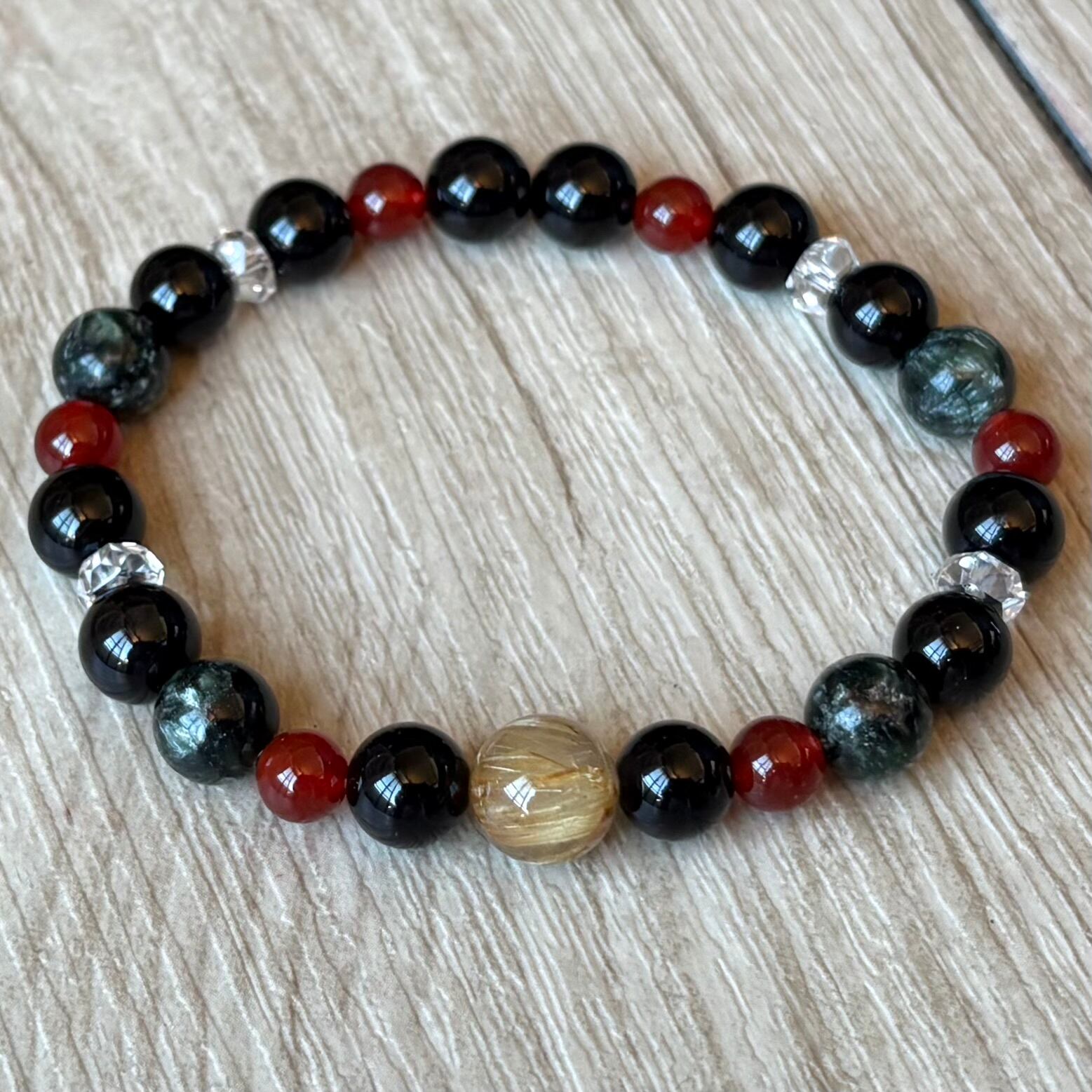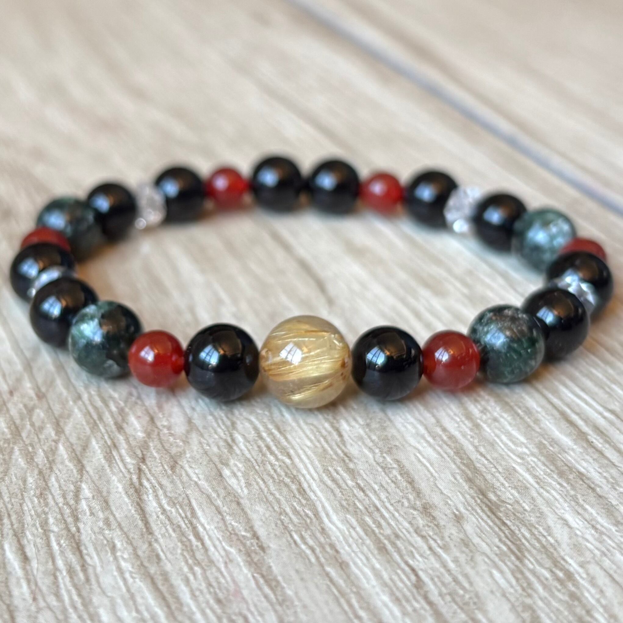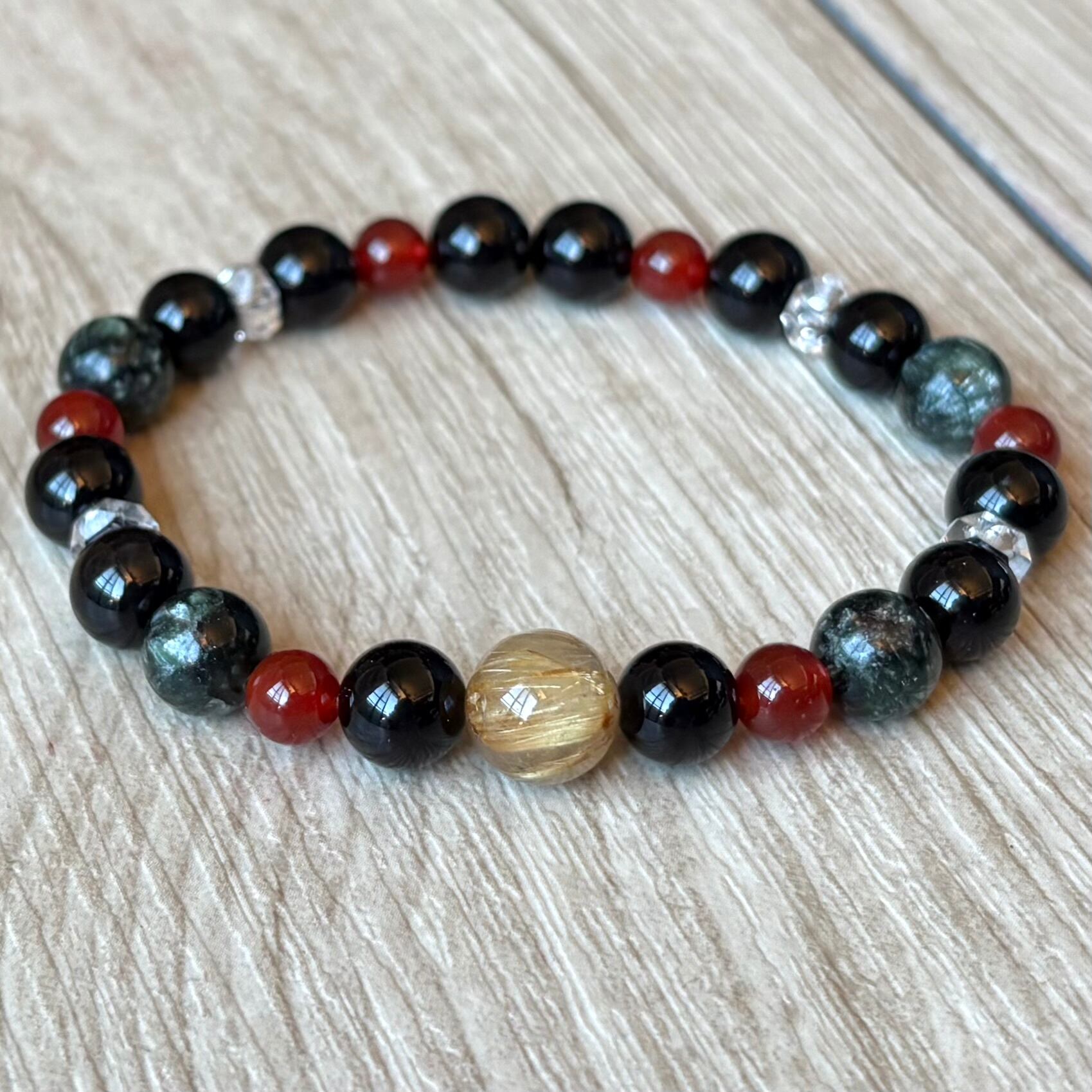 運気を上げるお守り/ルチル・モリオン・セラフィナイト・レッドアゲート・水晶/パワーストーンブレスレット/天然石ブレスレット