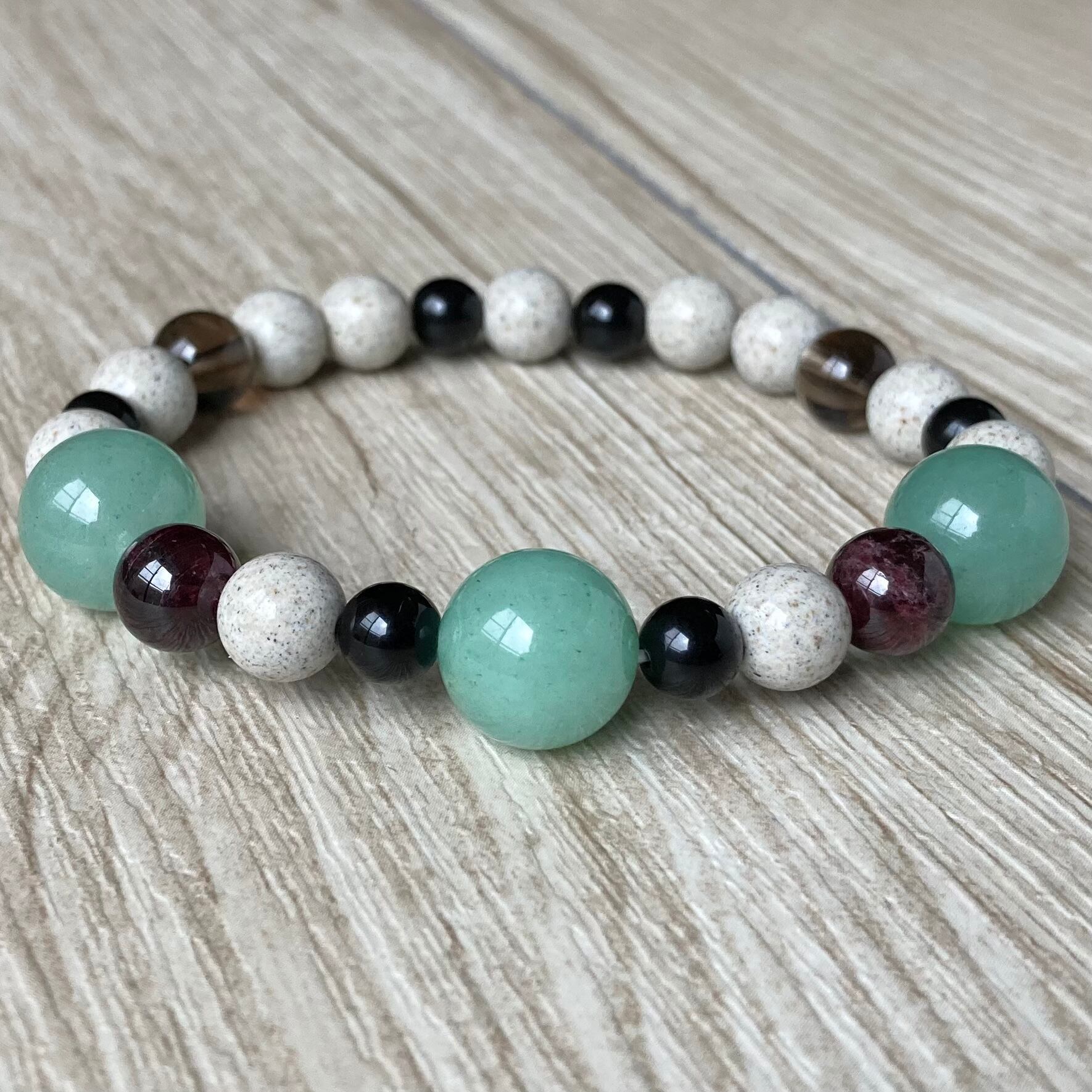 病に負けないエネルギーで健康を手にするパワーストーンブレスレット/北投石・アベンチュリン・ガーネット・モリオン・スモーキー