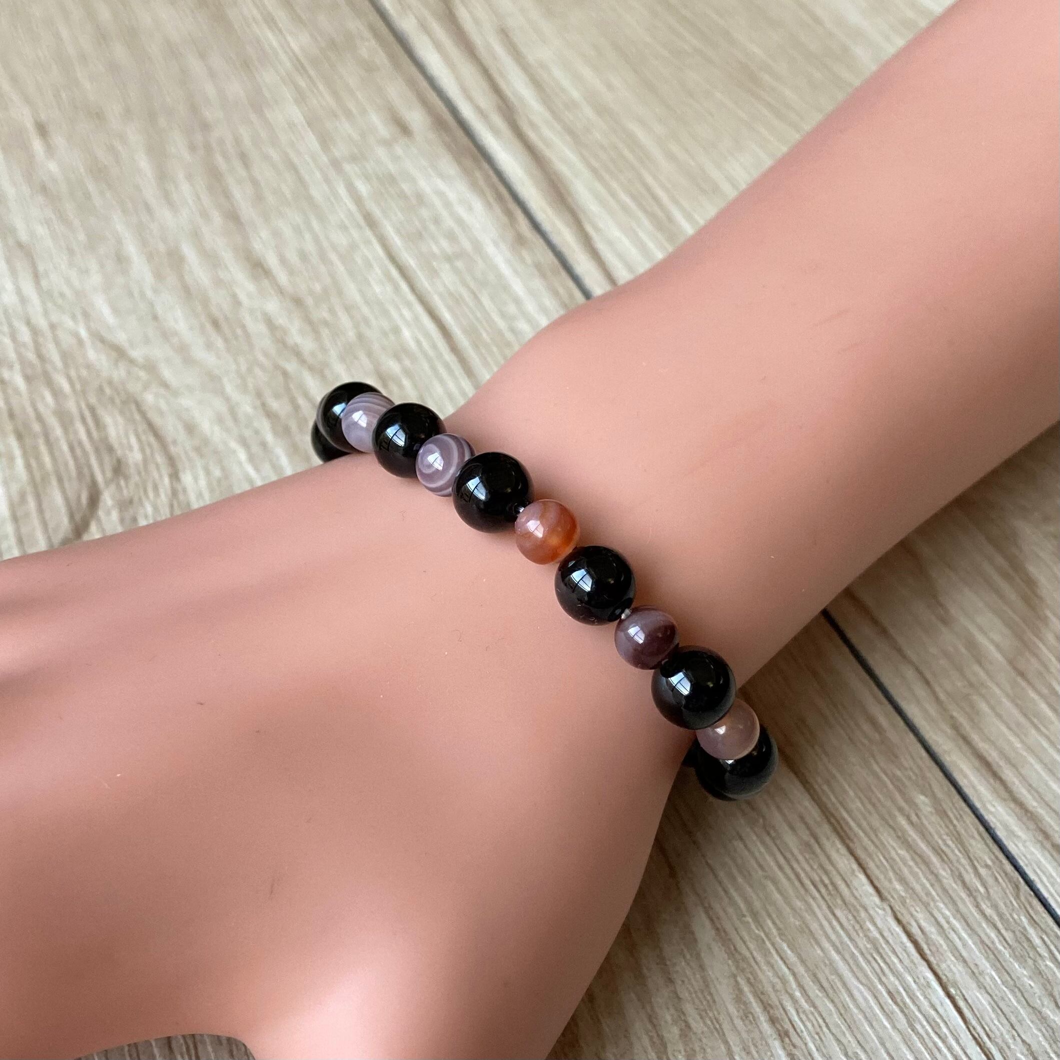 不安を払拭し力を引き出すお守り/パワーストーンブレスレット/天然石/モリオン、 天眼石(チベットメノウ)