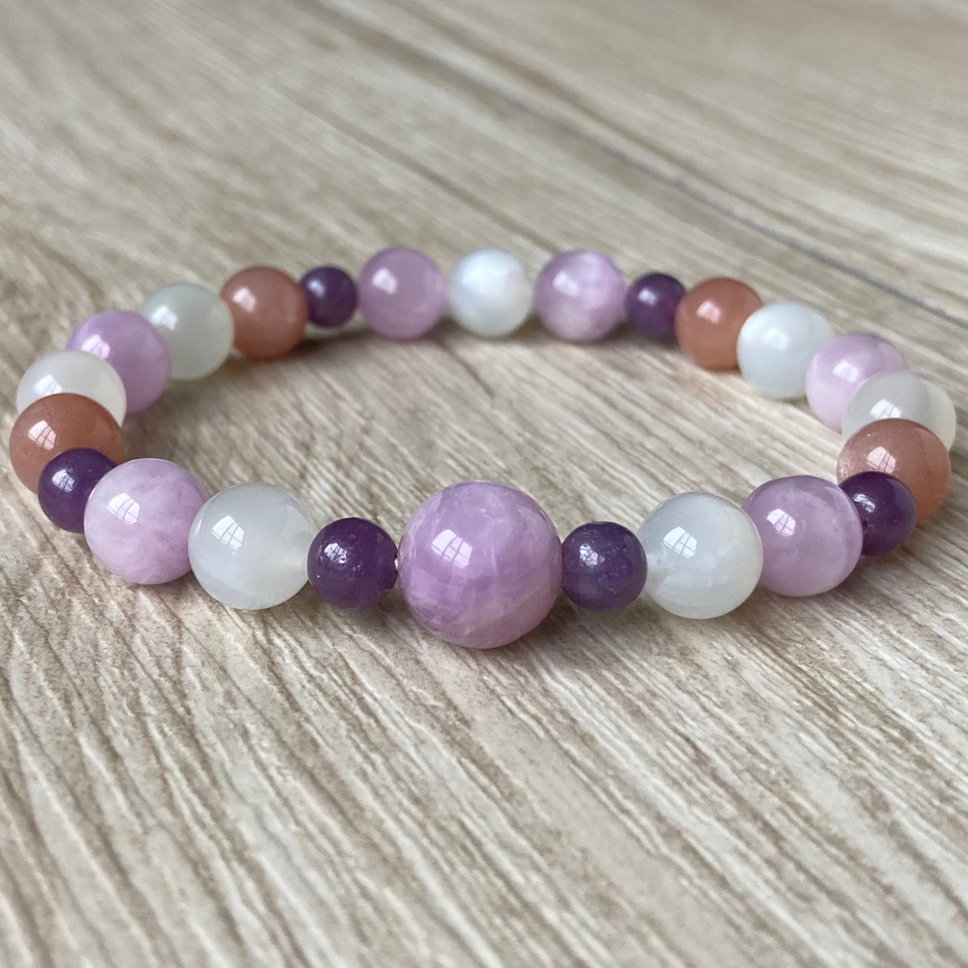 愛ある行動で勝利をつかむ/クンツァイト・ムーンストーン・ルビー/パワーストーンブレスレット/天然石ブレスレット